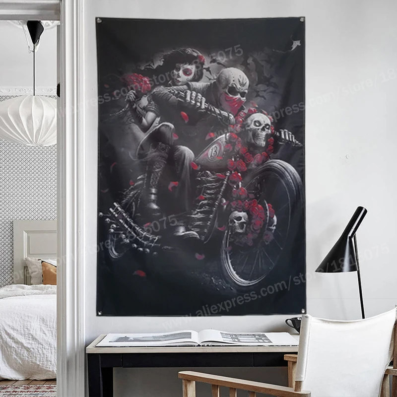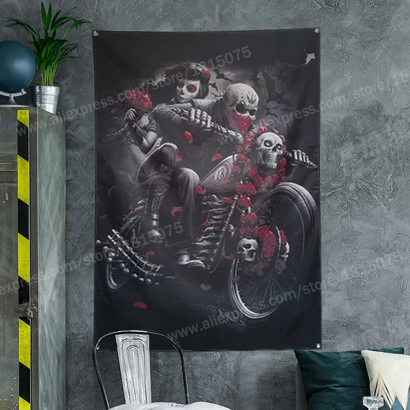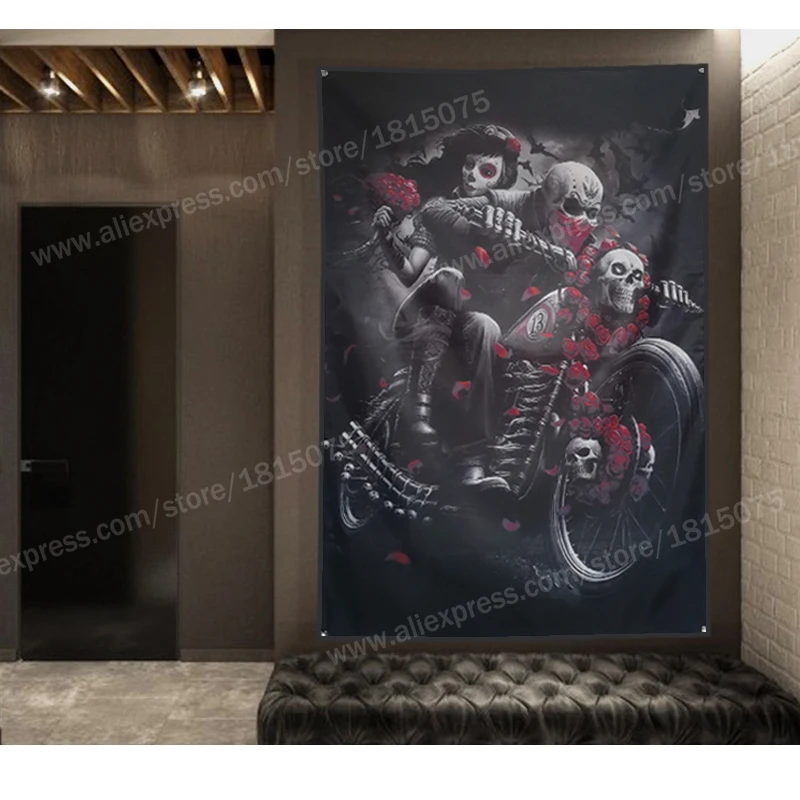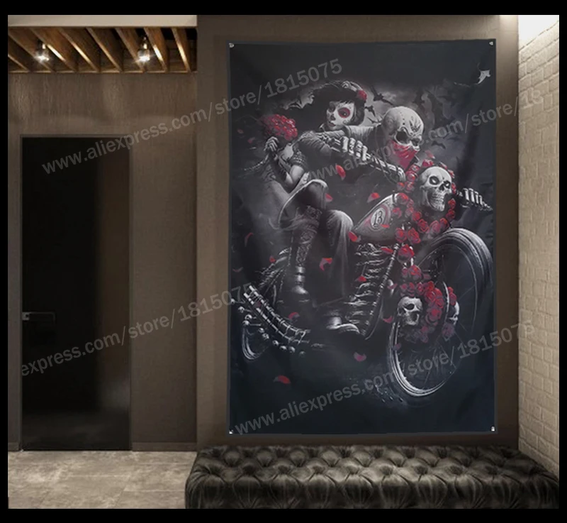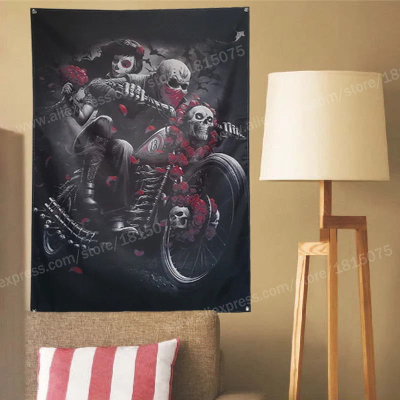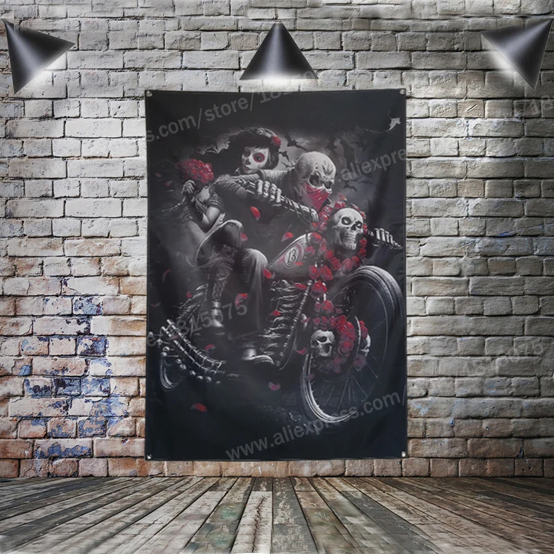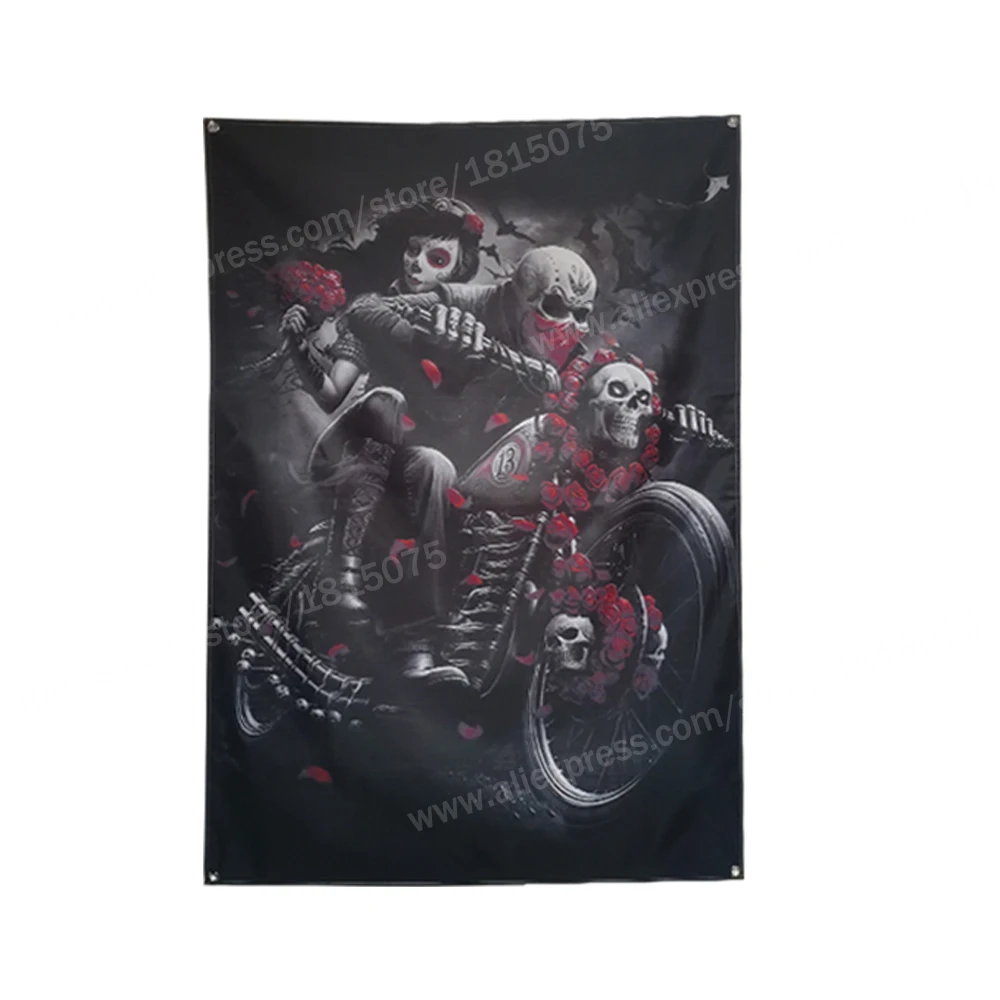 Череп Татуировка Мотоцикл Байкер розы флаг баннер сексуальная леди красота Искусство украшения дома висит 4 люверса в углах 3*5 футов