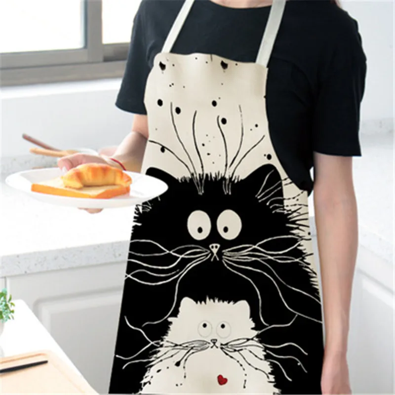 Кухонный Фартук с милым принтом кошки для женщин и мужчин, водонепроницаемый хлопчатобумажные фартуки шеф-повара, официанта, кафе, магазина, фартуки для барбекю, парикмахеров, нагрудники