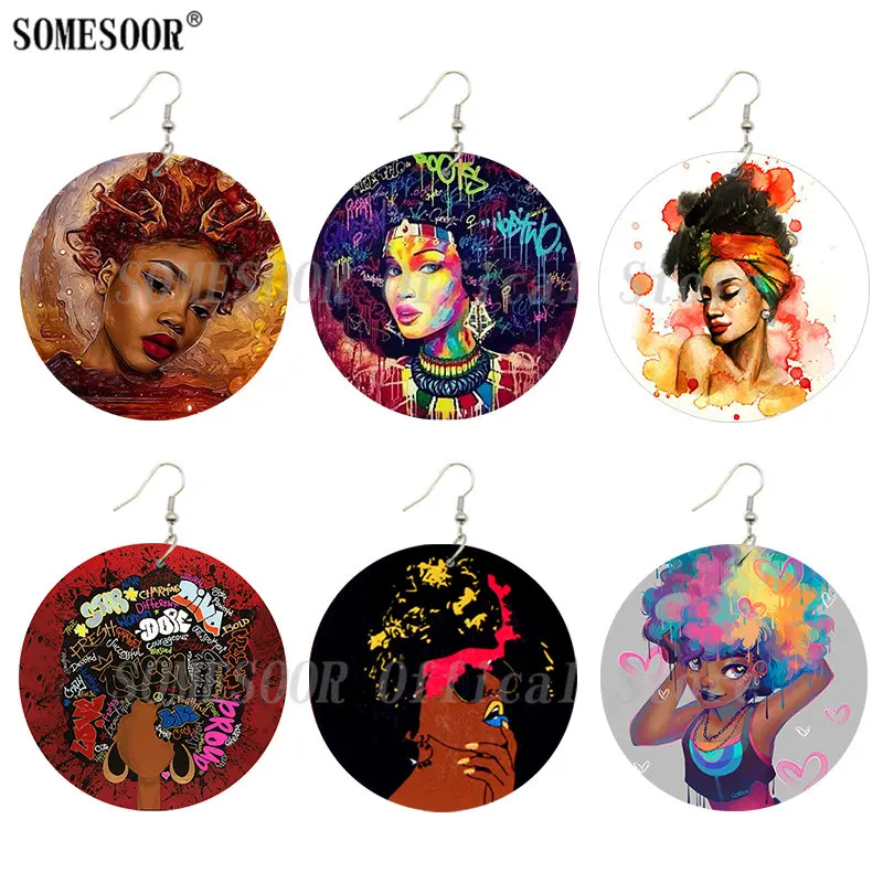 SOMESOOR афро косы поп-арт печатные деревянные висячие серьги черна...