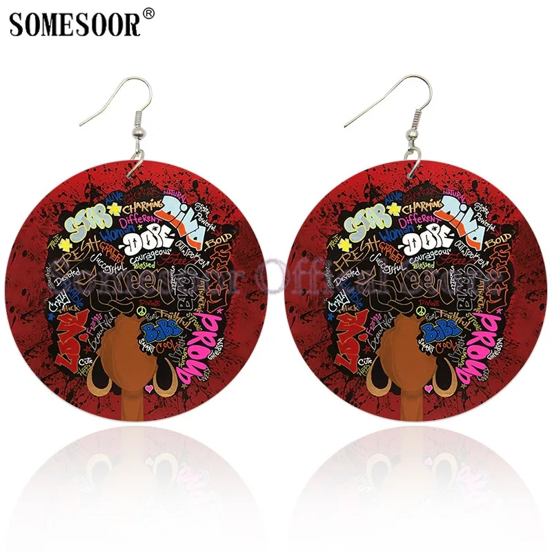SOMESOOR мои афро корни деревянные висячие серьги с принтом Не прик...