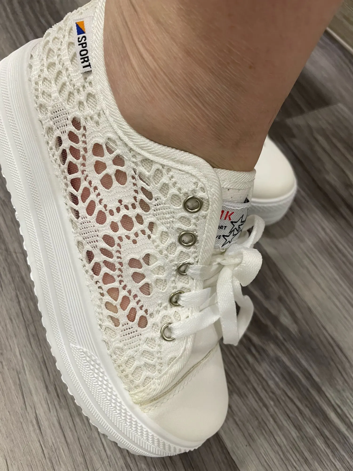 Кеды женские с кружевом, дышащие кроссовки на платформе, плоская подошва, вырезы, повседневные, белые, модель Лето 2020
