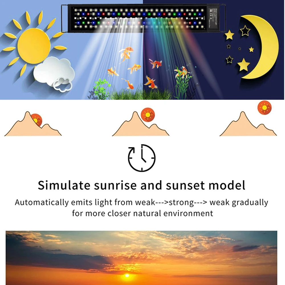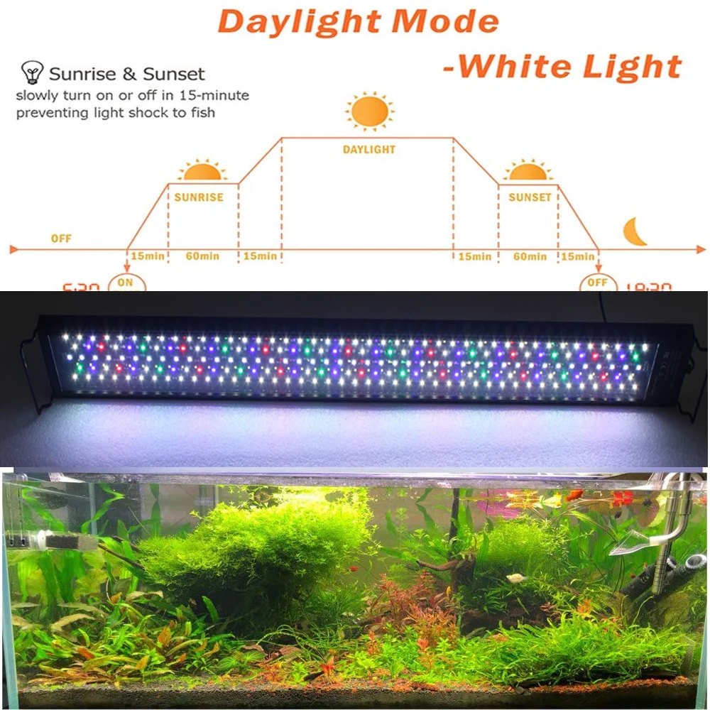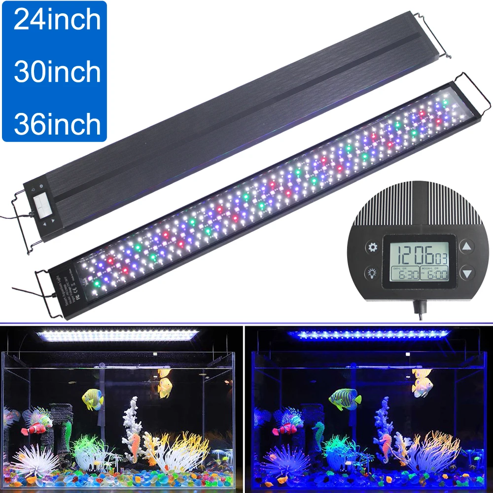 Водонепроницаемый светодиодный светильник для аквариума, ламсветильник полного спектра для аквариума с таймером восхода и заката, 24 дюйма, 36 дюймов