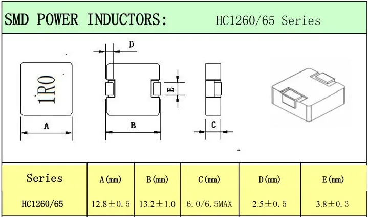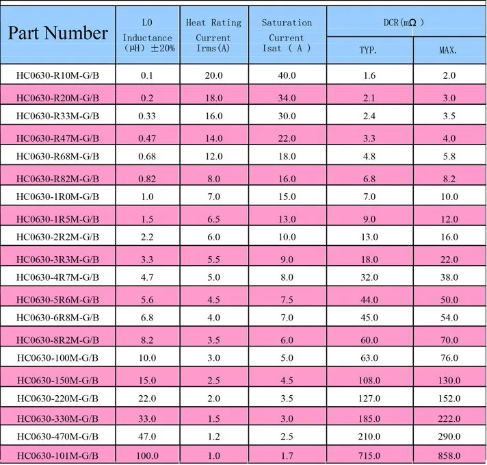 Номер модели0650 1UH 2.2uH 3.3uH 4.7uH 6.8UH 10uH 15UH 22uH 33uH 47uH