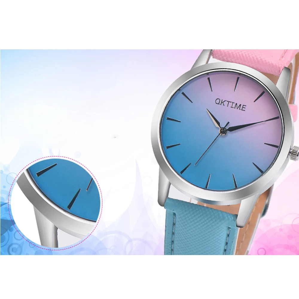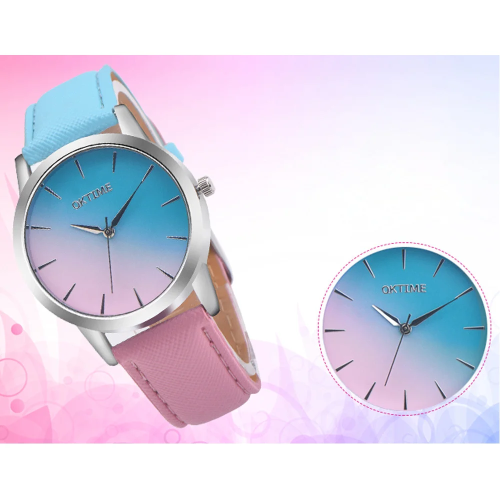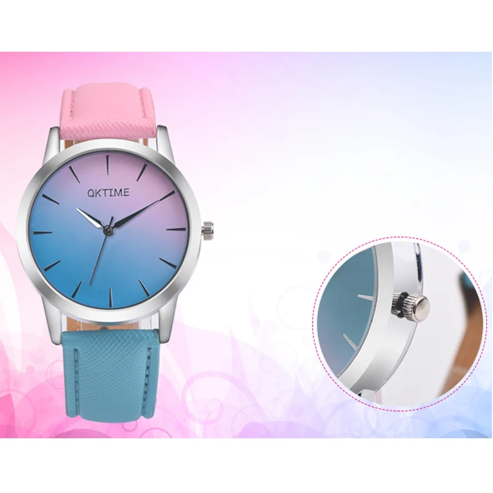 Часы наручные женские кварцевые с радужным дизайном, Модные Аналоговые, с кожаным ремешком, из сплава