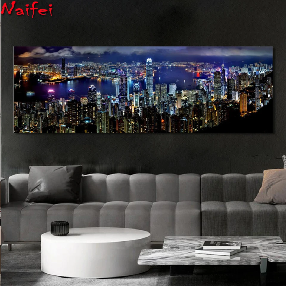 Гонконгская ночная сцена Алмазная вышивка полностью квадратная круглая Алмазная картина большой размер Вышивка крестом мозаика 5d картина