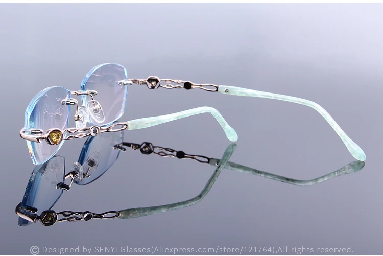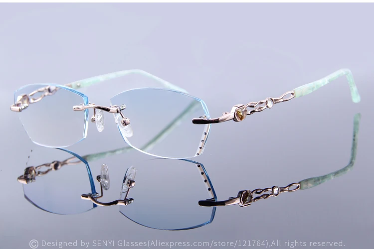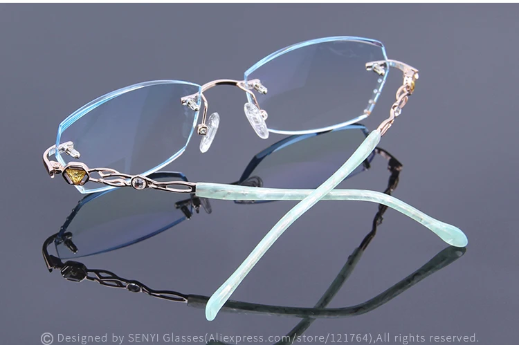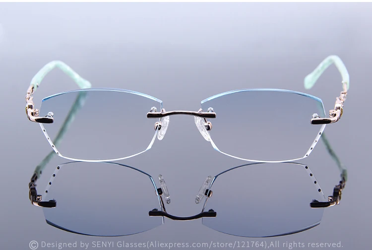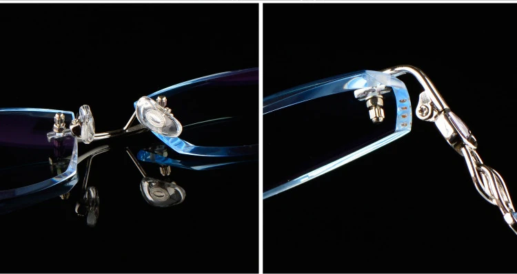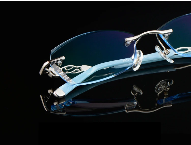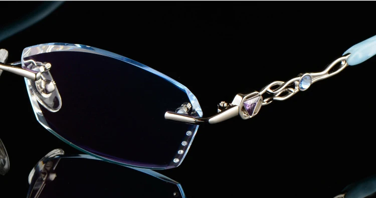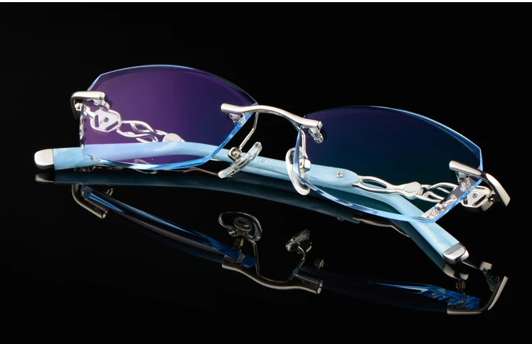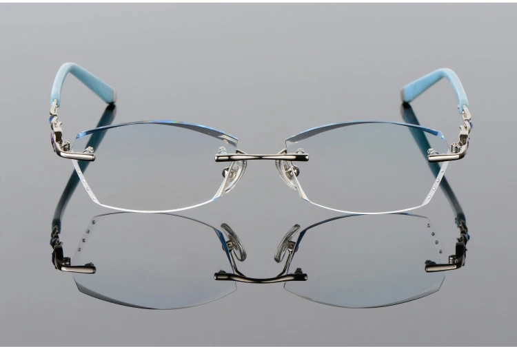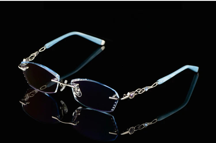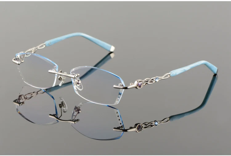 Очки для чтения женские титановые очки без оправы Серебристые безрамные небесно-голубые стразы Алмазная резка без оправы