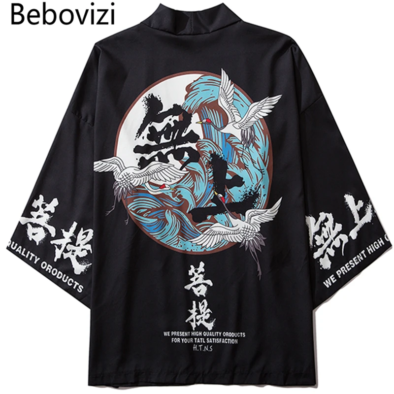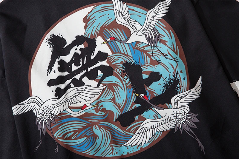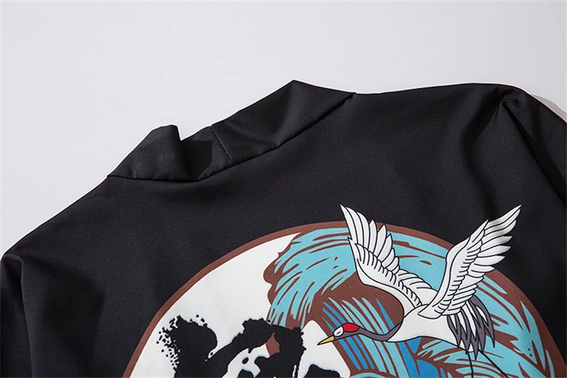 Японское кимоно, куртка с принтом Kanji Crane, в стиле Харадзюку, м...