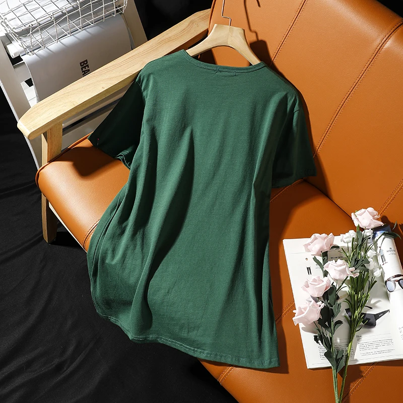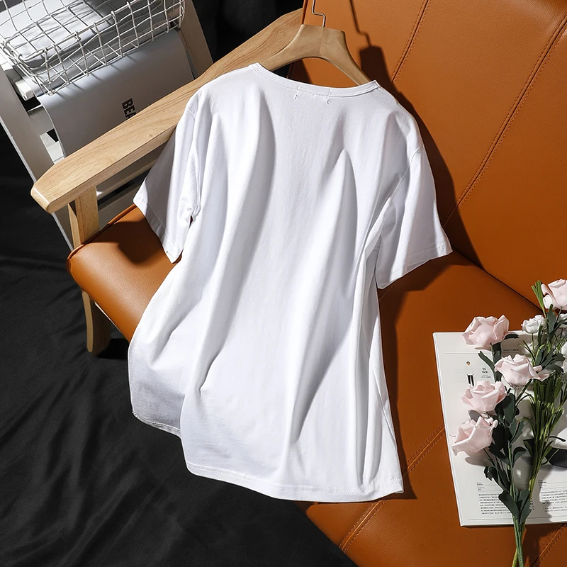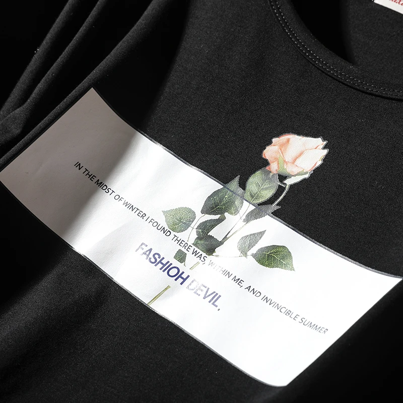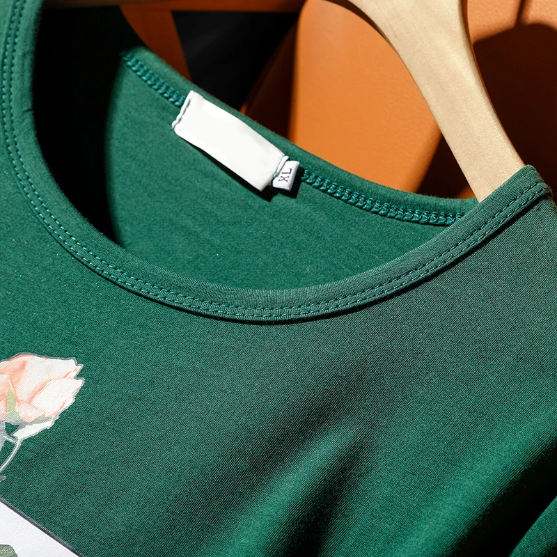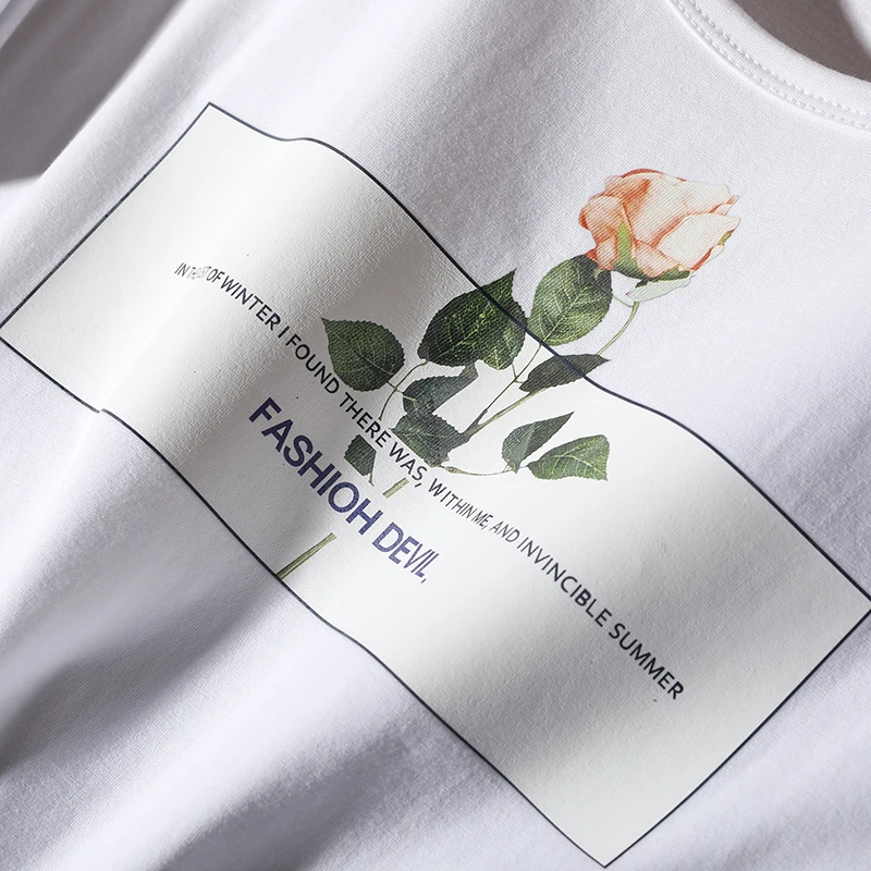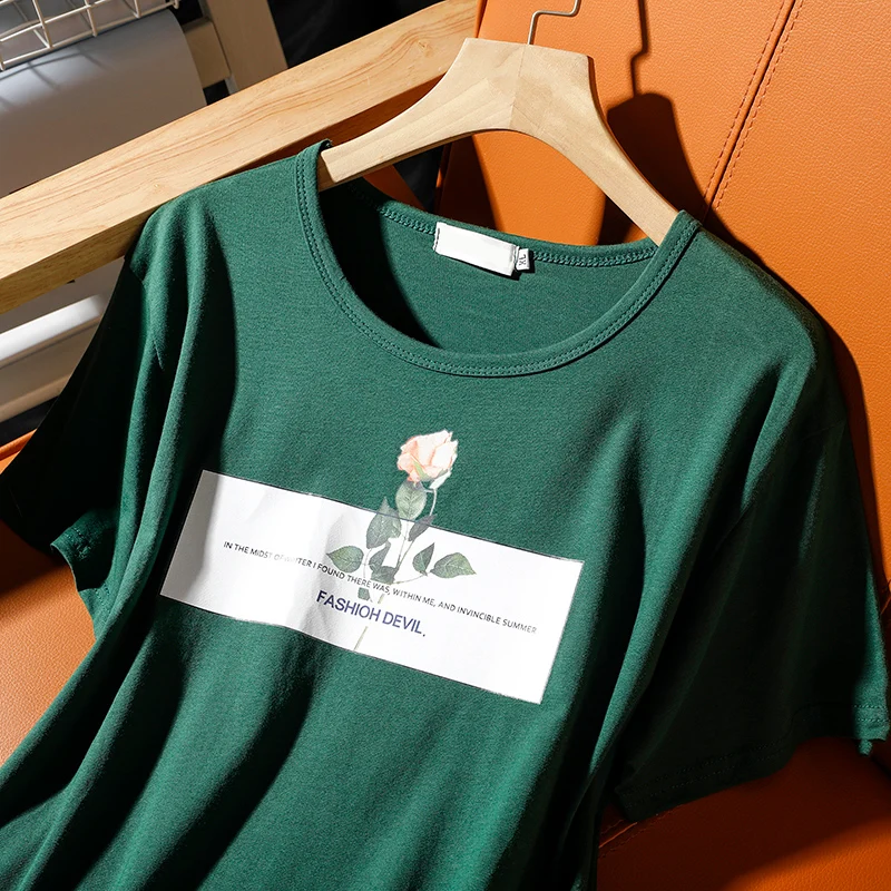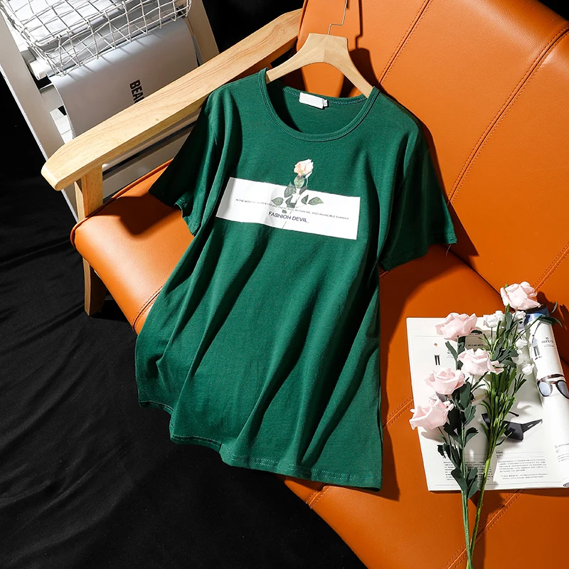 Футболка с короткими рукавами женская летняя новая корейская печать роз с круглым вырезом хлопковые свободные топы для отдыха женские удобные пуловеры