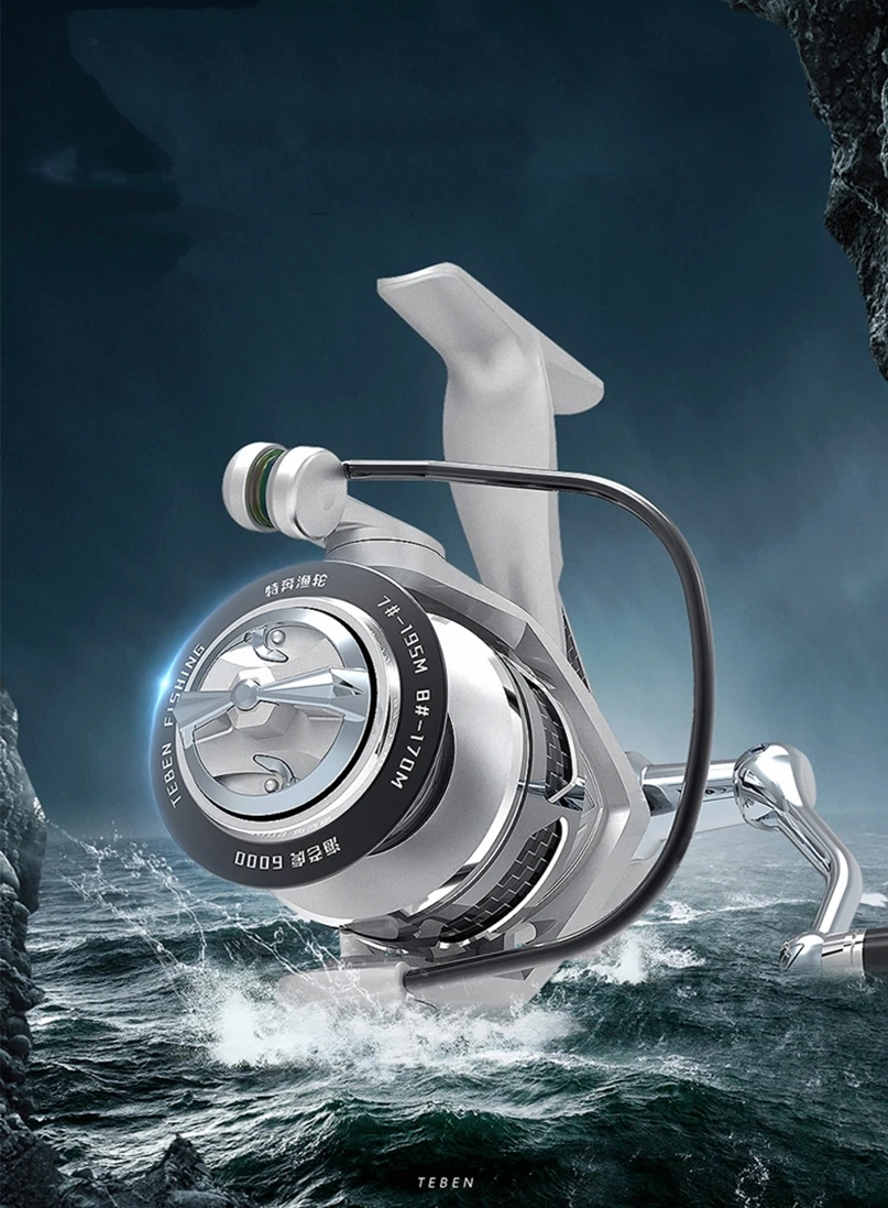 Рыболовная спиннинговая катушка TEBEN Surf-Tiger для морской рыбалки, макс. нагрузка 2000, 6000, с герметичным подшипником, 20 кг