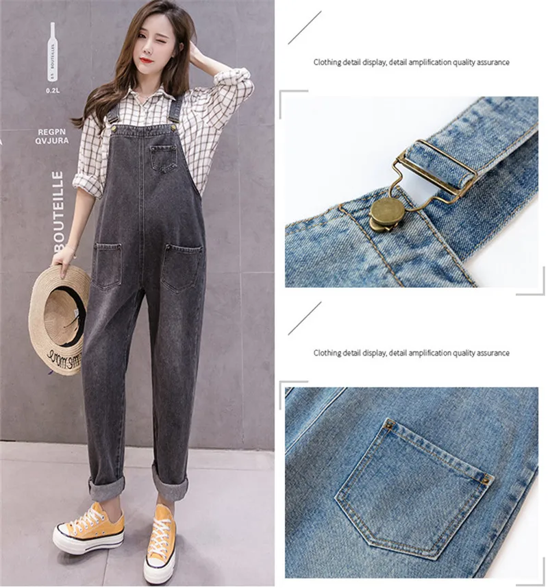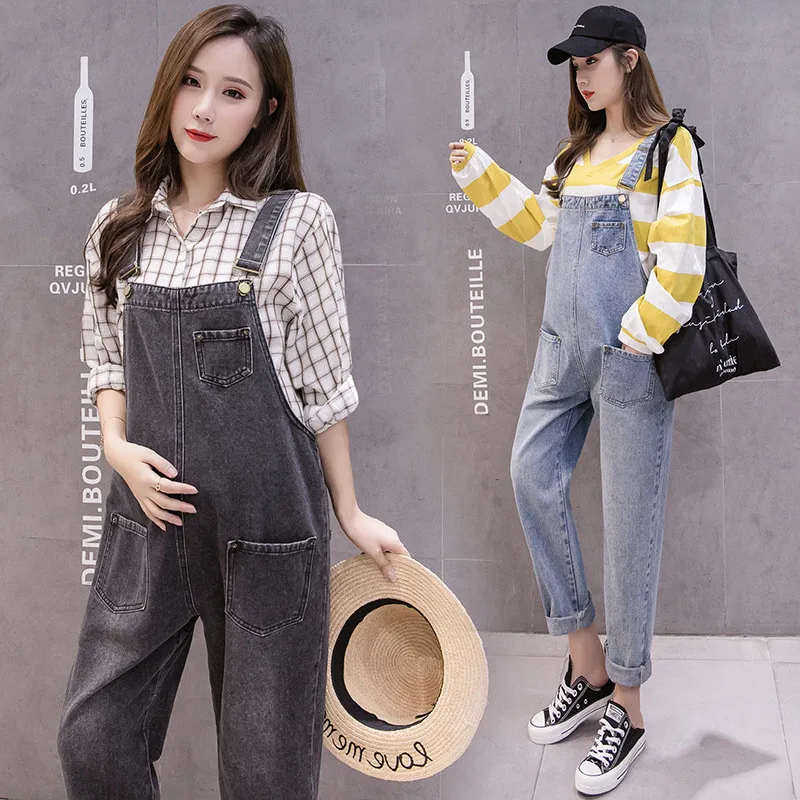 Джинсовые беременности и родам штаны детские комбинезоны джинсы для беременных женщин с подтяжками для униформы штанов Брюки для беременных одежда размера плюс