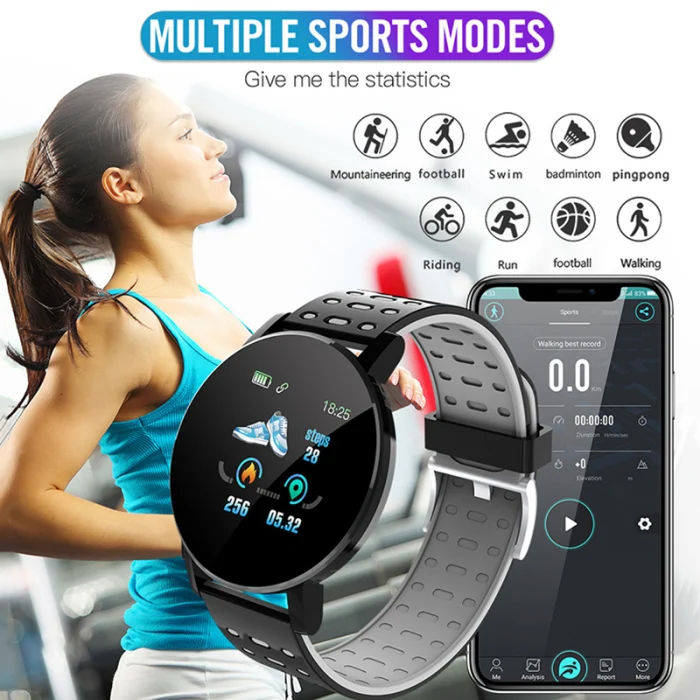 119 Plus круглые умные часы, цифровые мужские наручные часы, фитнес...
