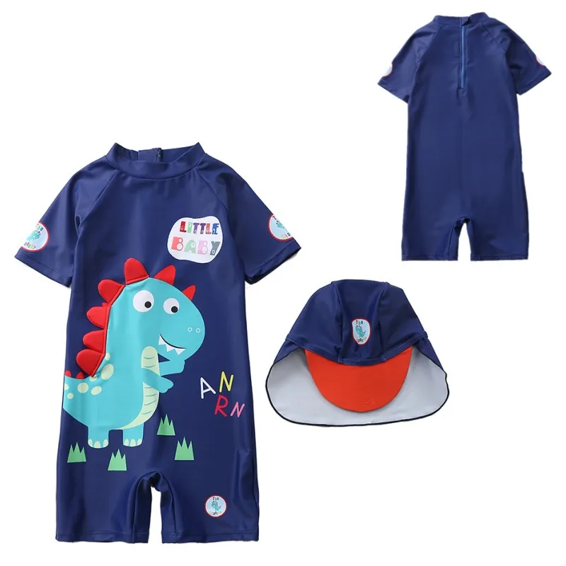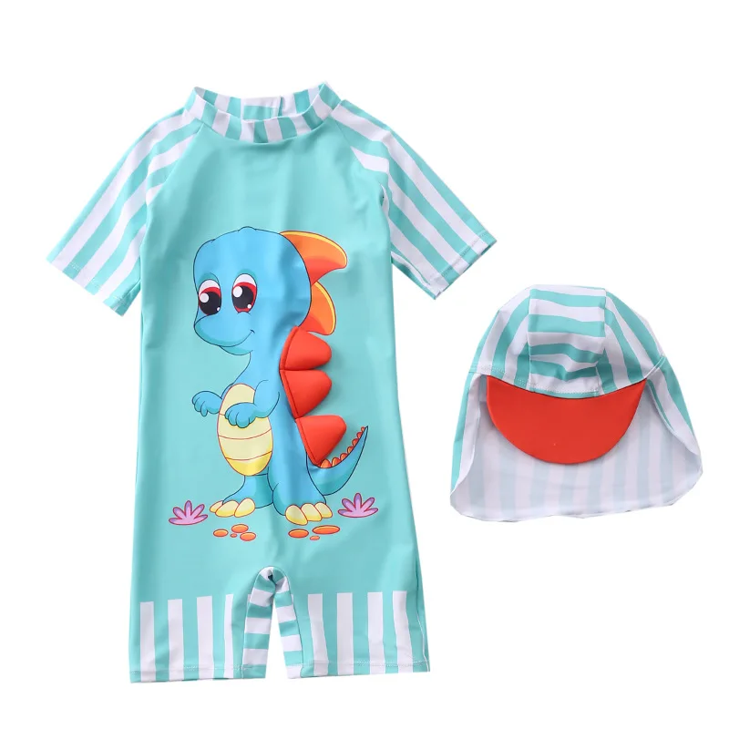 Новинка 2021, купальник для мальчиков с шапкой, Dinasour в виде акулы, Цельный Детский купальник, купальник для мальчиков, купальный костюм с акулой и шапкой