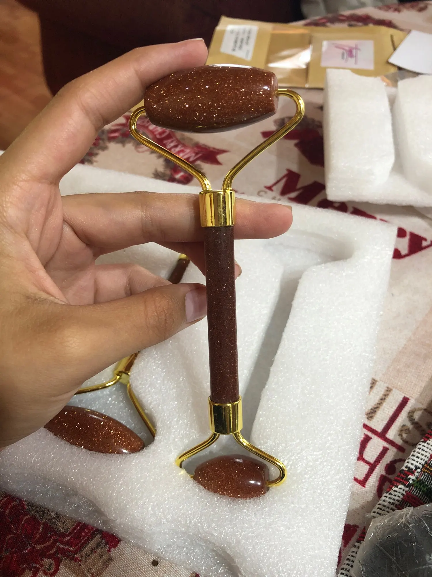 Ролик для лица прибыл гораздо быстрее, чем ожидалось. Я думаю, что заказал другой цвет, но этот тоже очень красивый. Ролик для лица-это настоящий камень, который защищен. Очень доволен этим продавцом и товаром!