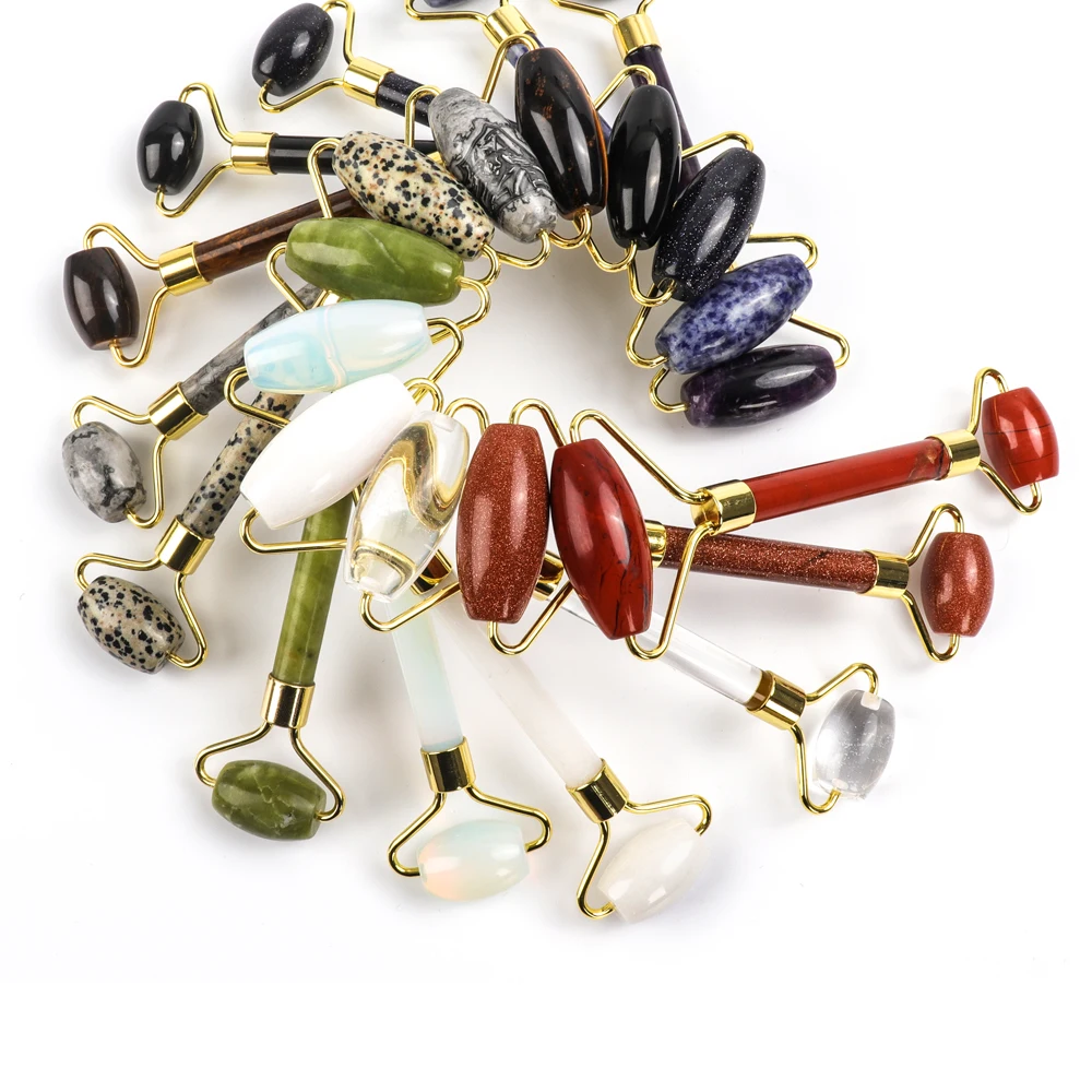 Нефритовый камень, роликовый массажер лица, инструмент для подтяжки кожи лица, Нефритовый роллер с натуральным аметистом, инструмент для ухода за кожей