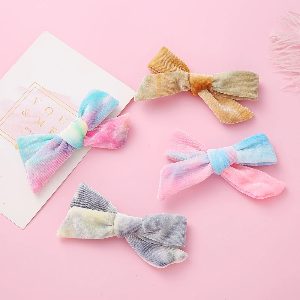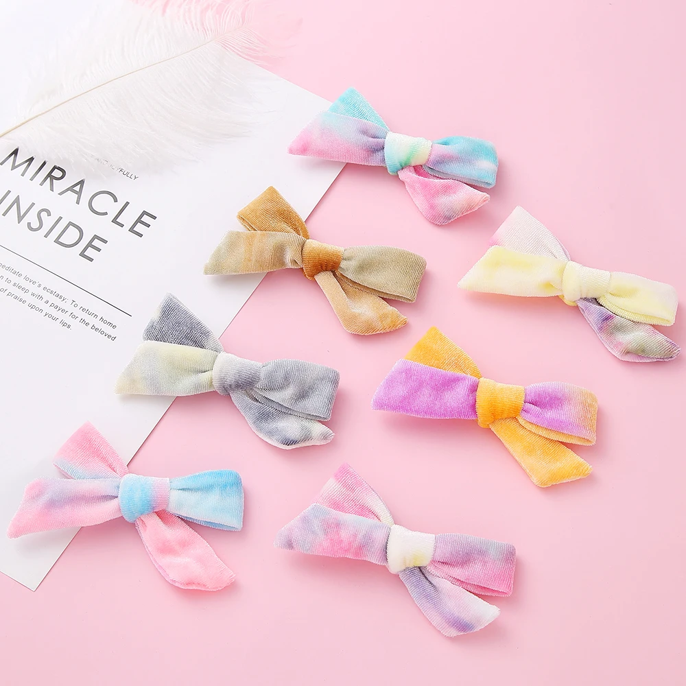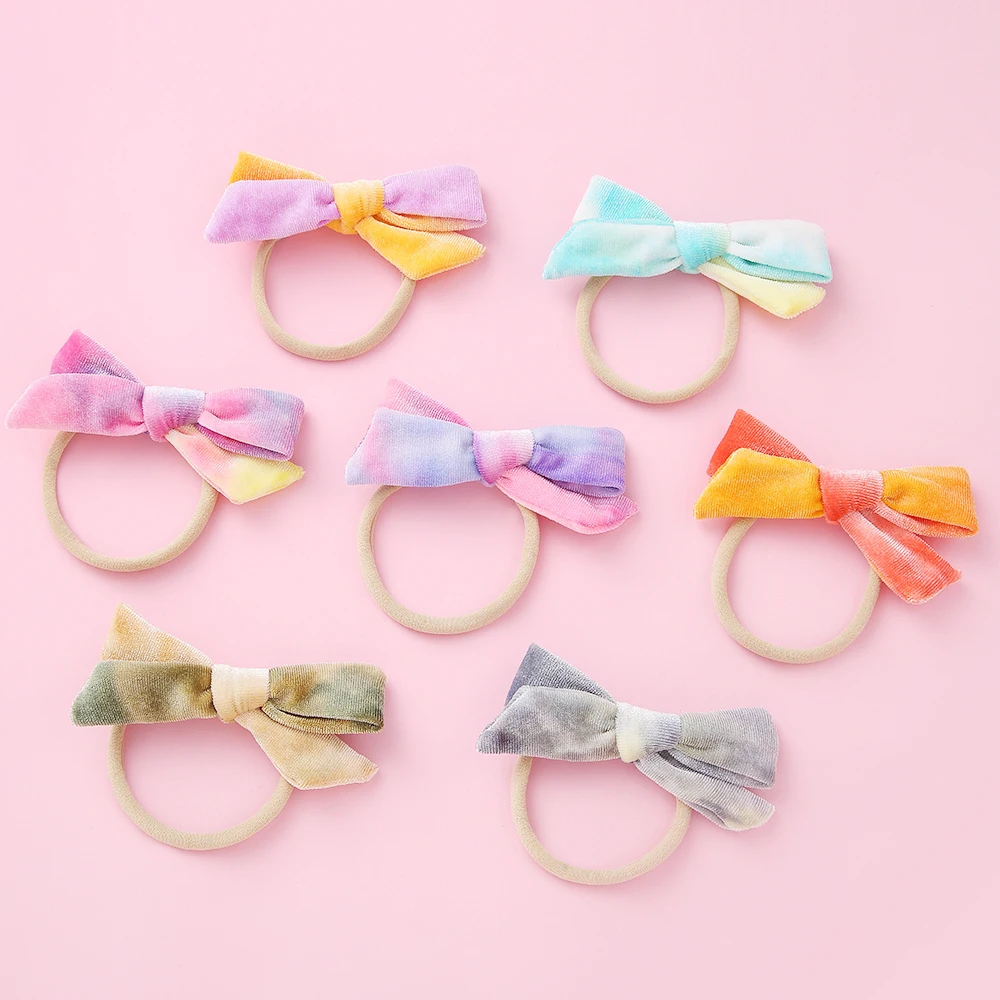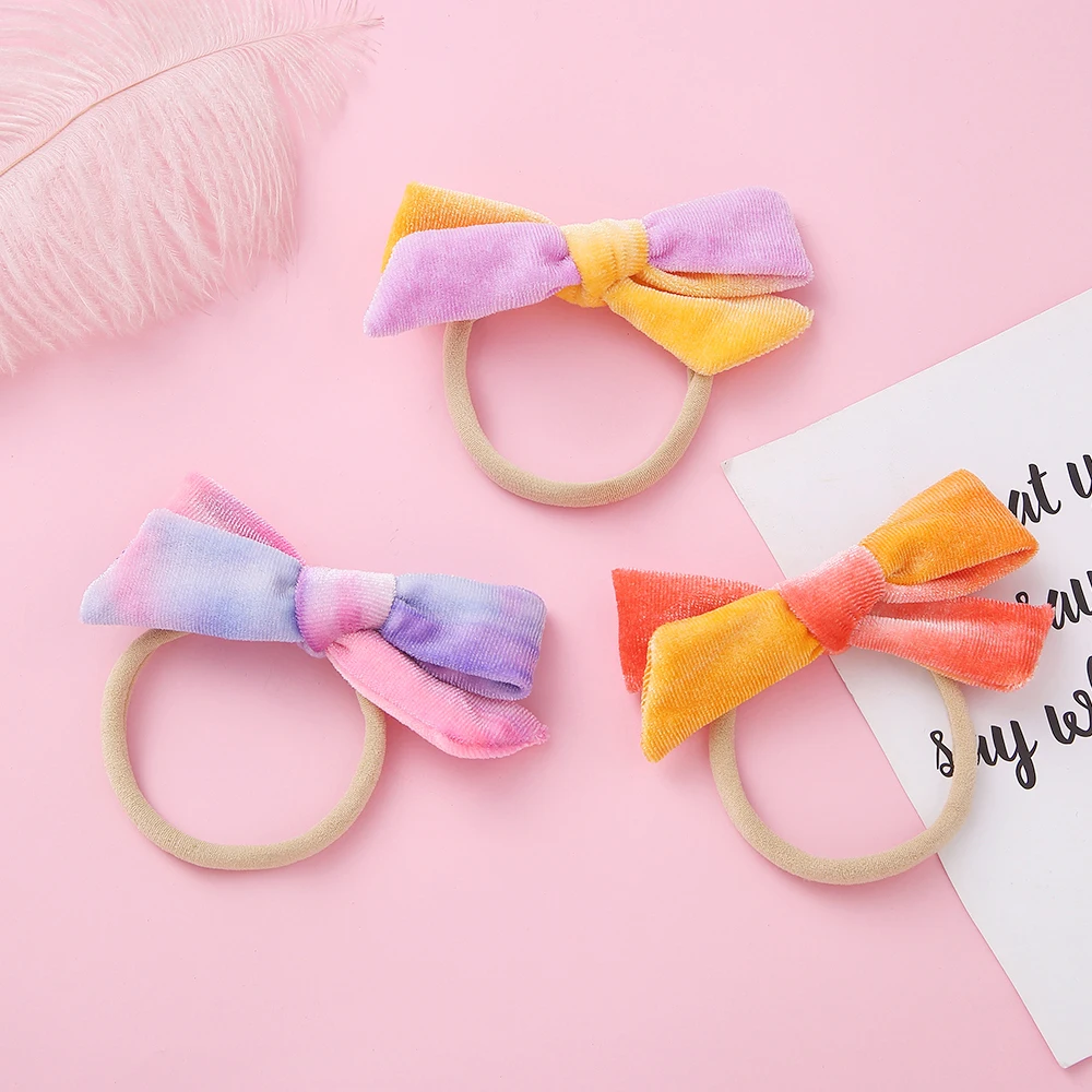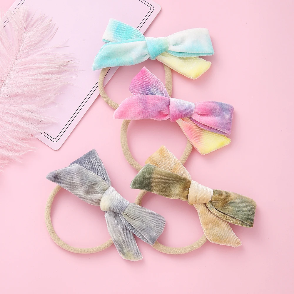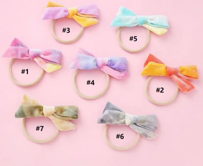 36 шт.лот 2020 Новинка 4 "Радужный Цвет Гладкий бархатный галстук повязка на голову с бантом нейлоновая повязка на голову или зажимы для девочек Детские аксессуары для волос