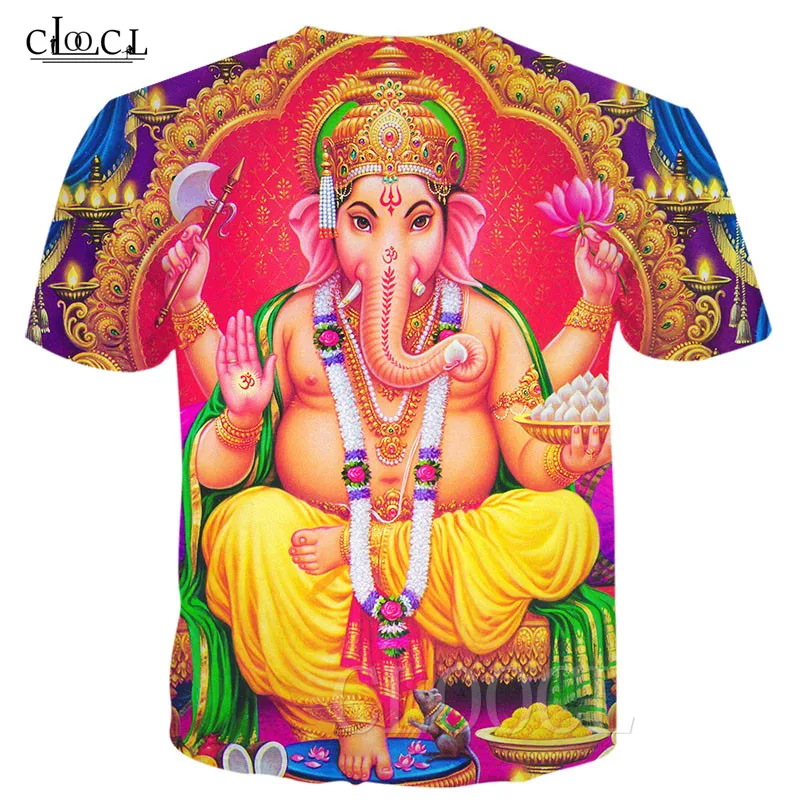 2019 летние Ганеш футболка головой слона индуизме Бог Ганеша 3D печать унисекс футболка для мужчин и женщин; Сезон лето футболки кофты для детей, начинающих ходить, уличная одежда