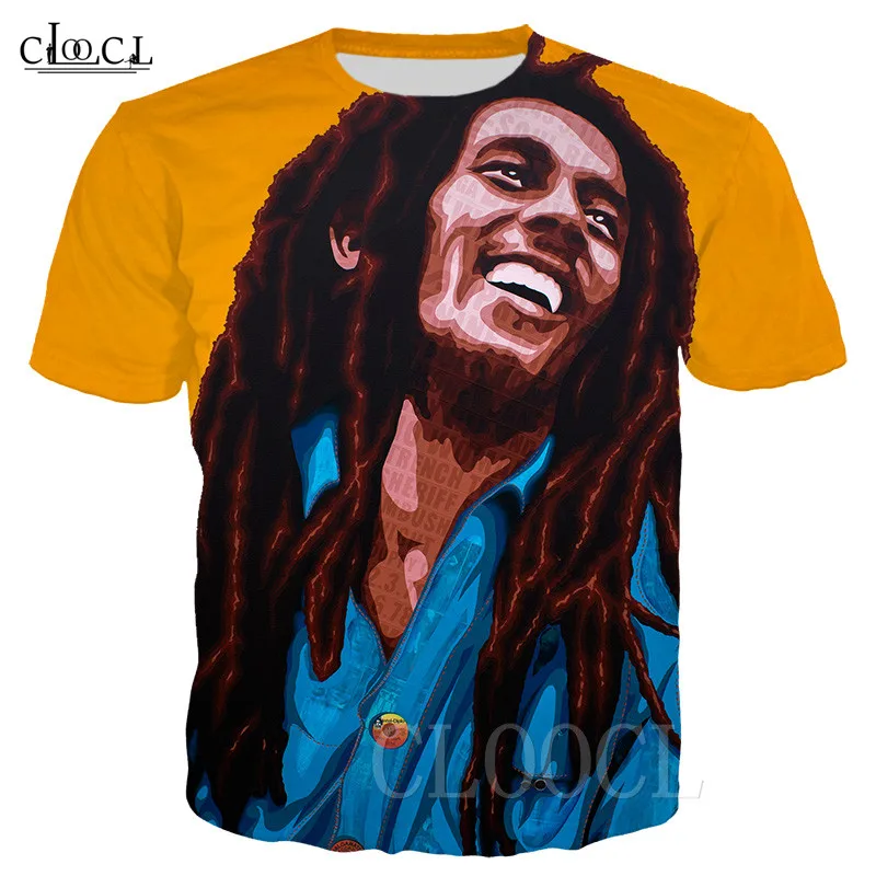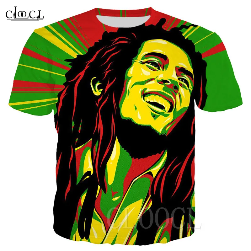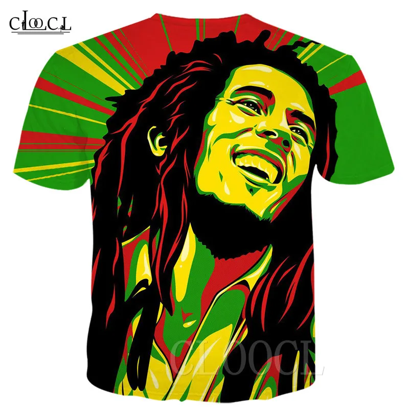 Летние футболка и ямайского рэгги создатель Боб Марли 3D унисекс с принтом Harajuku Мужская модная футболка в стиле хип-хоп Уличная пуловер