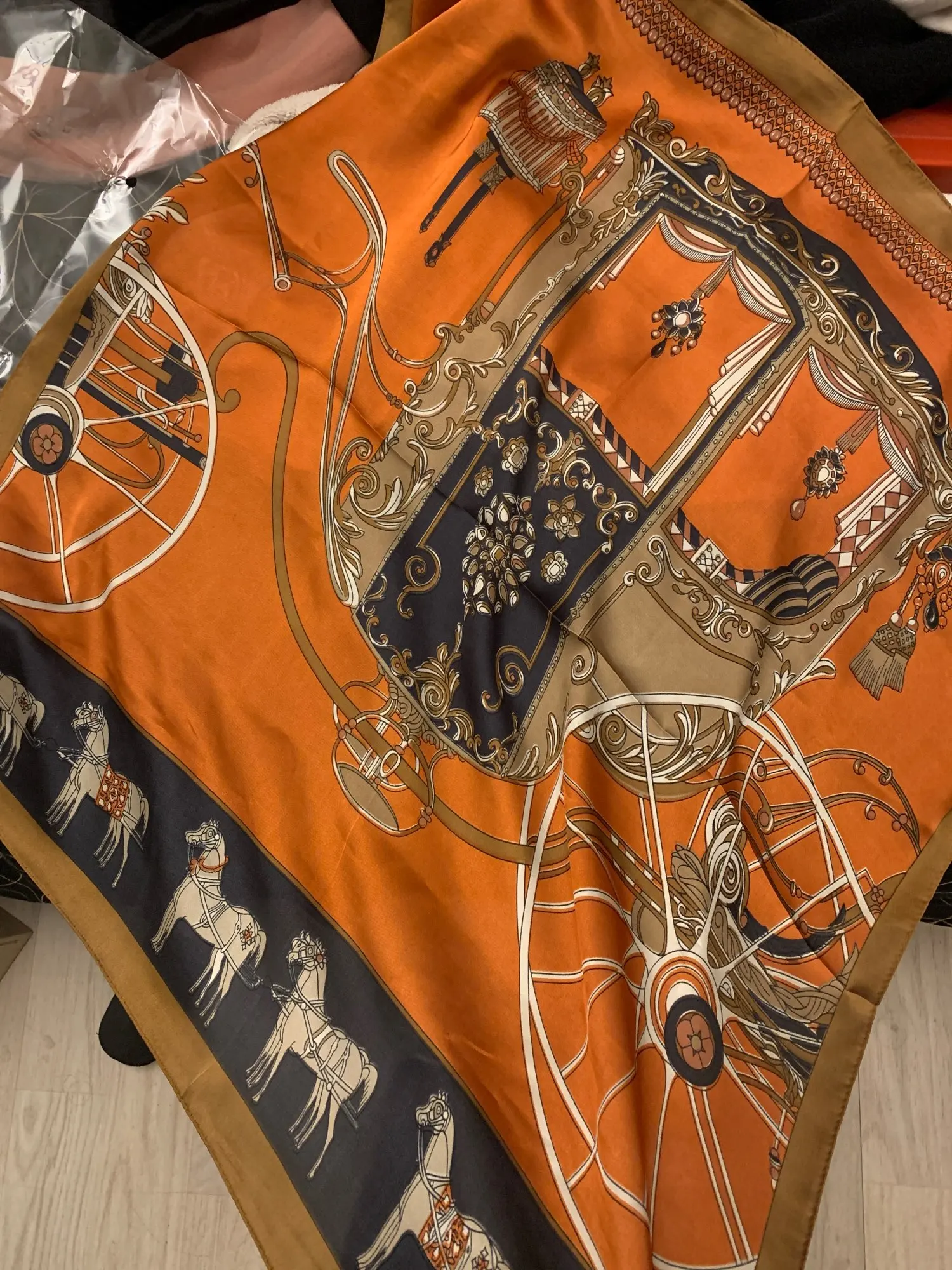 Хороший платок. Ткань приятная, не натуральная, но очень шелковистая. Покупала на сумку, но его смело можно носить и на шее. Немного края местами прострочены не ровно, но на моем цвете это не заметно. Отправили быстро. С продавцом не общалась.
