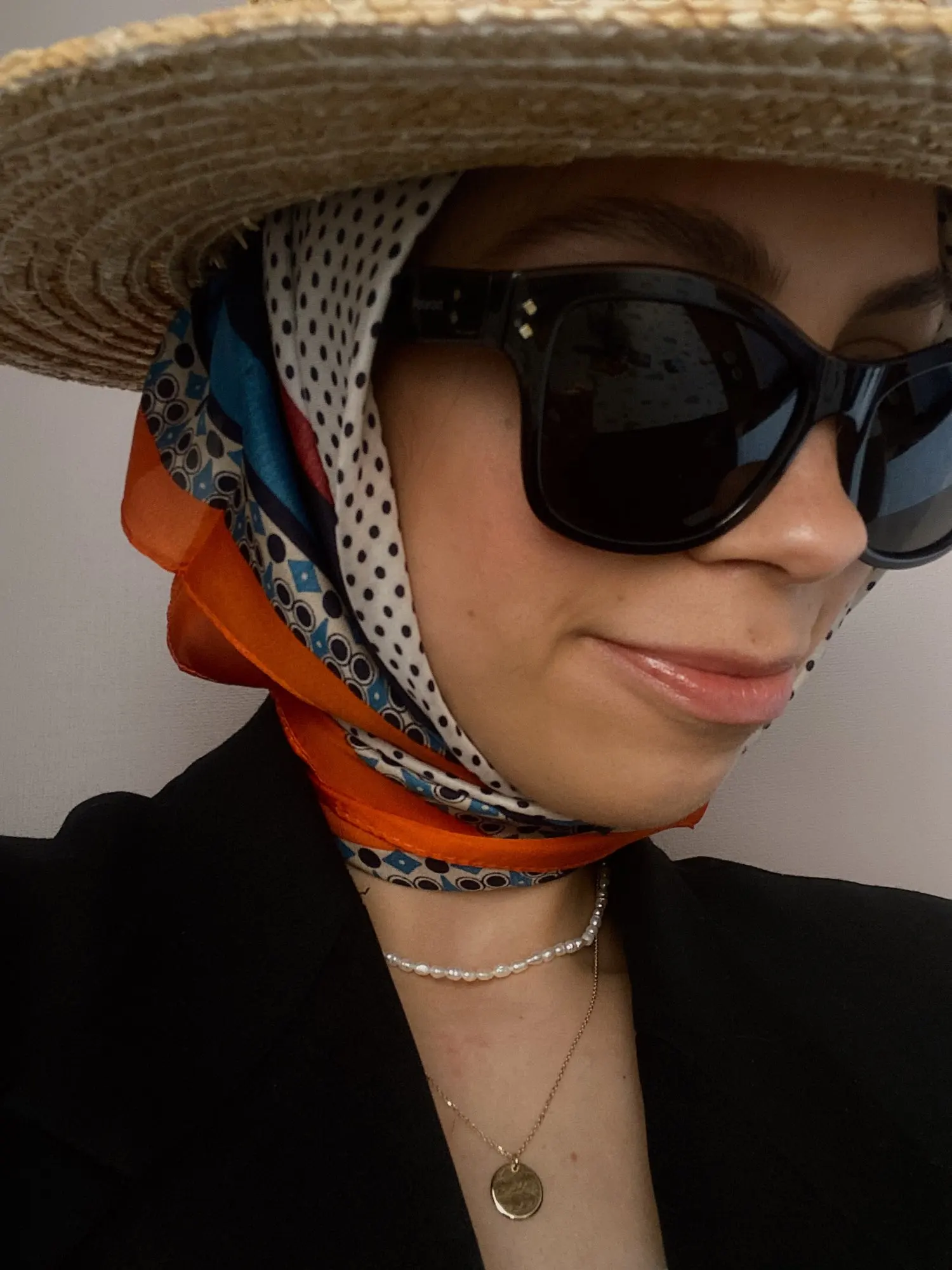 Платок оказался маленьким. Планировала завязывать его на голову. Но с его размерами только на шею. И то маловат. Не советую в общем