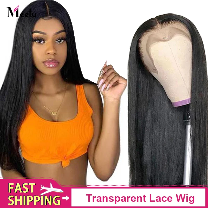 Meetu парики Синтетические волосы на кружеве парики для Для женщин перуанский волос 150% плотность прозрачный кружевной предварительно вырезанные парик 13x4x1 парики из натуральных волос