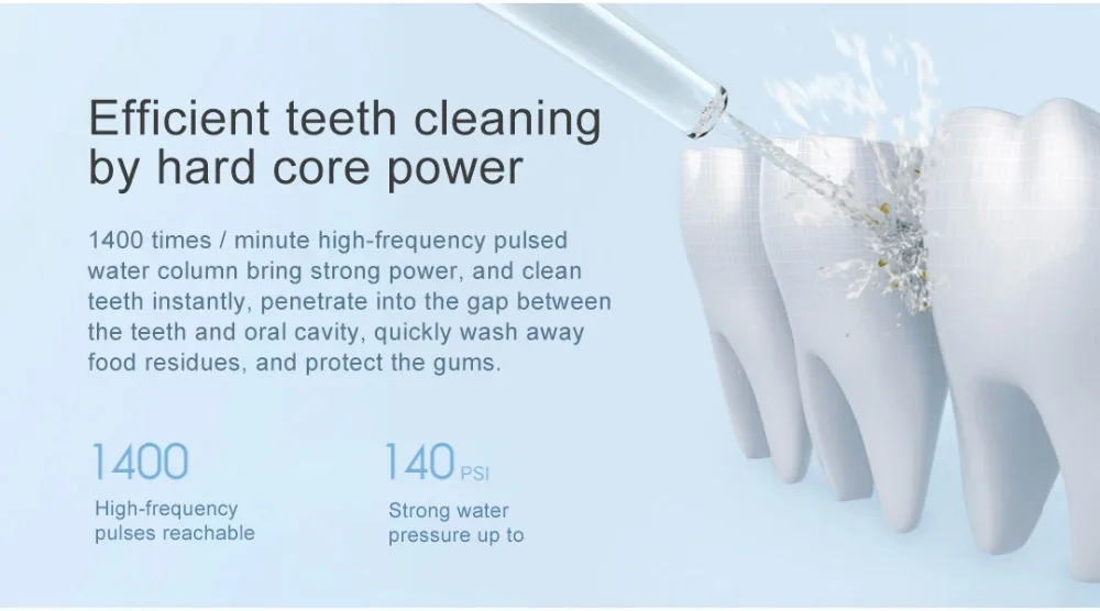 Оригинальный Xiaomi Mijia Электрический ирригатор для полости рта Стоматологическая Флейшер стоматологический удар воды Flosser IPX7 водонепроницаемый Высокочастотный импульсный