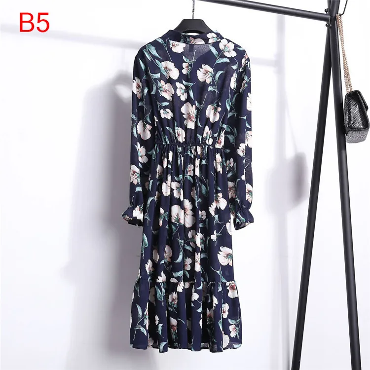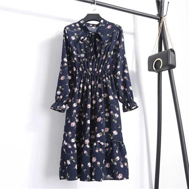 Женское винтажное платье-рубашка в горошек, офисное элегантное платье с длинным рукавом и цветочным принтом в Корейском стиле, весна-осень