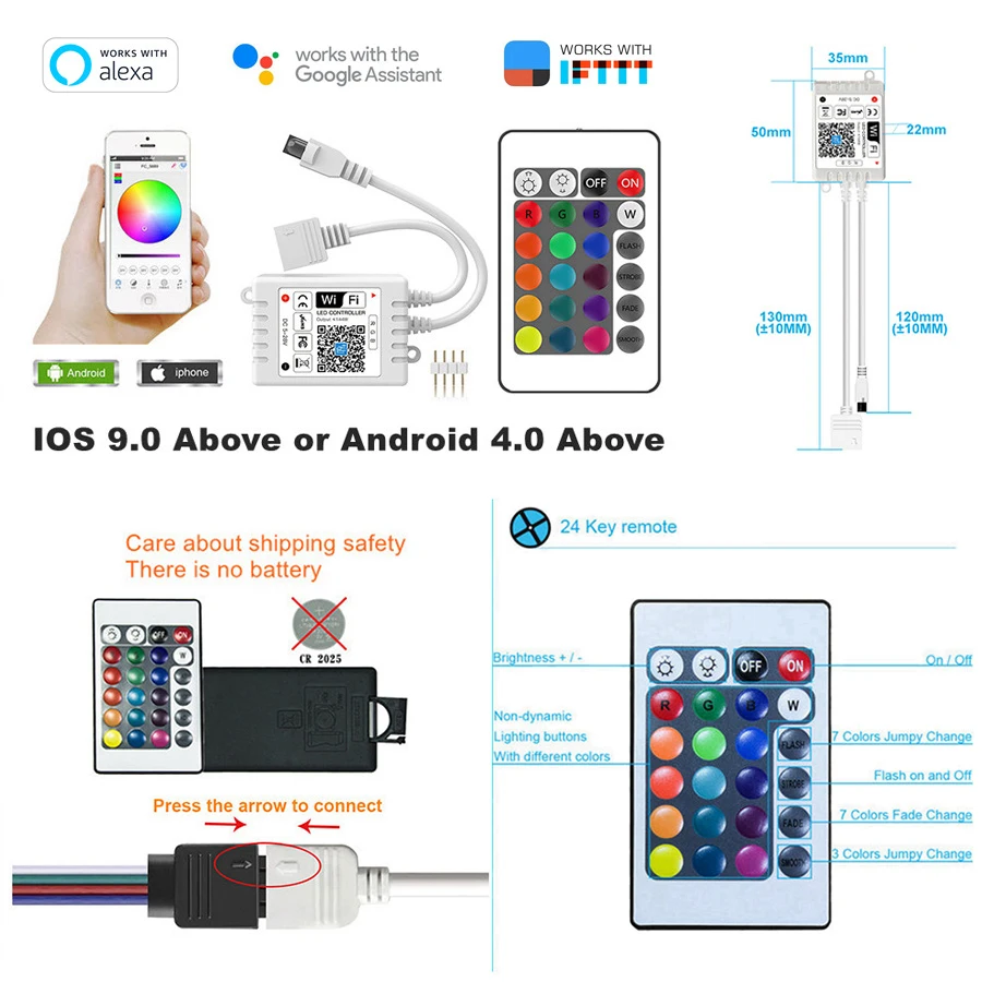 control methodWiFi Control + 24keys IR Control Remote