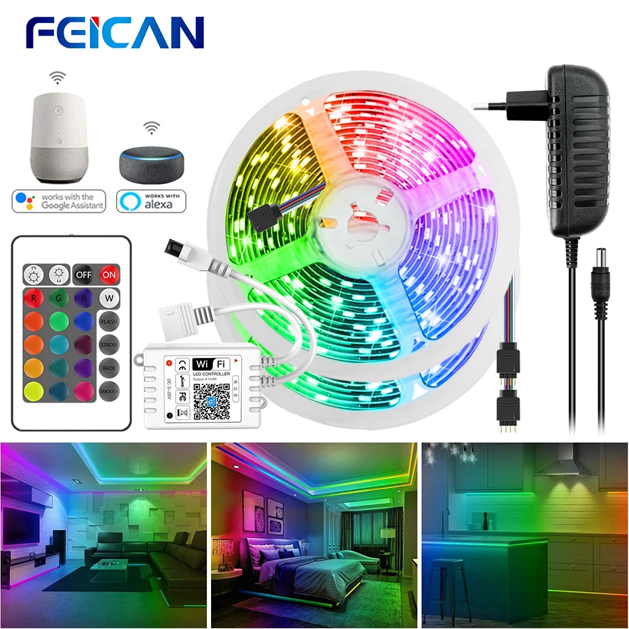 Светодиодная лента, WiFi, RGB, водонепроницаемая, 12 В, Диодная лента, 10 м, 20 м, подсветка, приложение, управление, Волшебный дом, умный, работает с Alexa