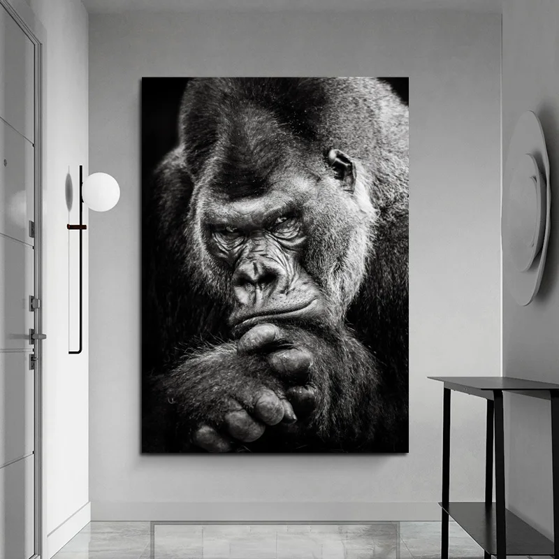 Плакат, черная Картина на холсте гориллы, картина в скандинавском стиле, фотообои с рисунками обезьяны для гостиной, домашний декор