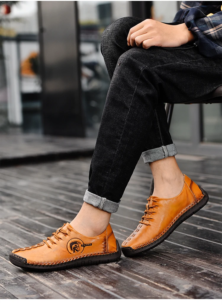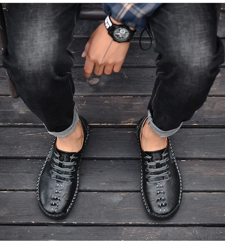 Туфли мужские кожаные, шнуровка, плоская подошва, повседневные удобные лоферы, прошитая обувь, ручная работа, для вождения, большие размеры 14 48, лето