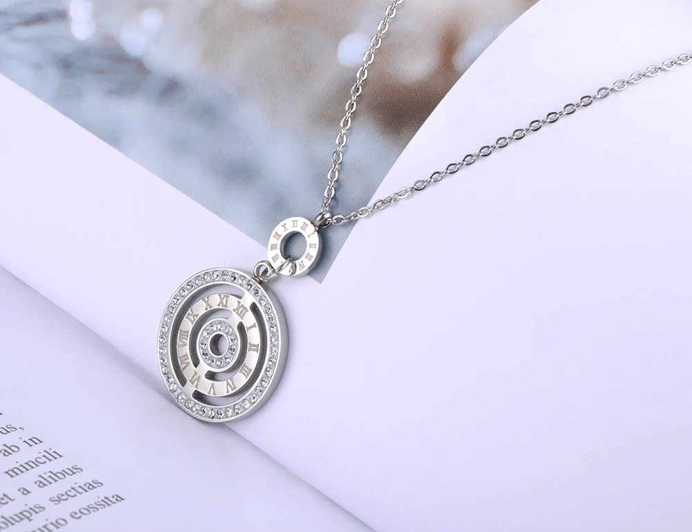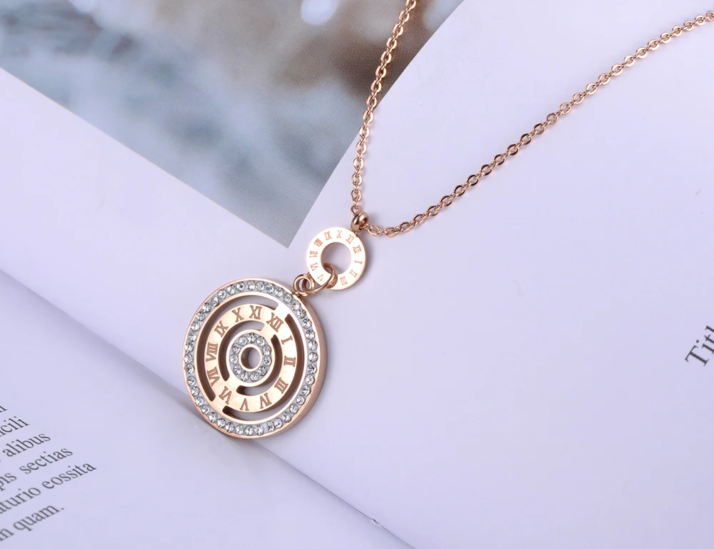 Lokaer, Трендовое ожерелье с подвеской из циркона ААА, нержавеющая сталь, розовое золото, цыганские цифры, круги, чокеры, ожерелье s для женщин N19045