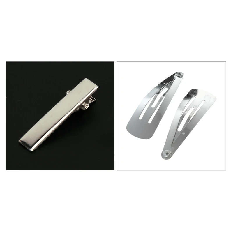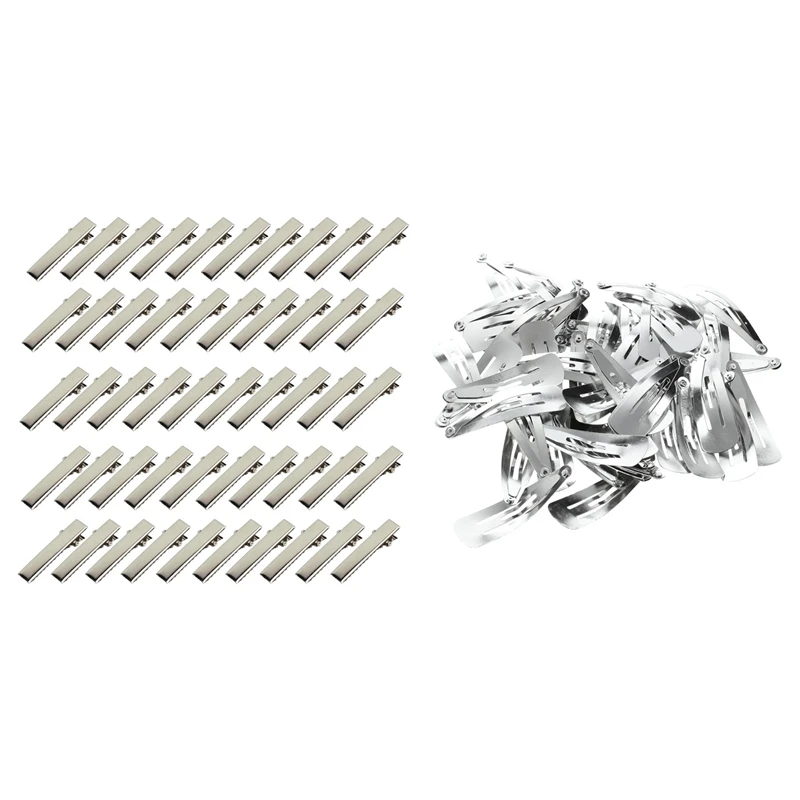 Серебряные Зажимы для волос 100 шт.: 50 зажимов для волос 40 мм крафтовый бант и 50 мини зажимов под крокодила для волос сделай сам