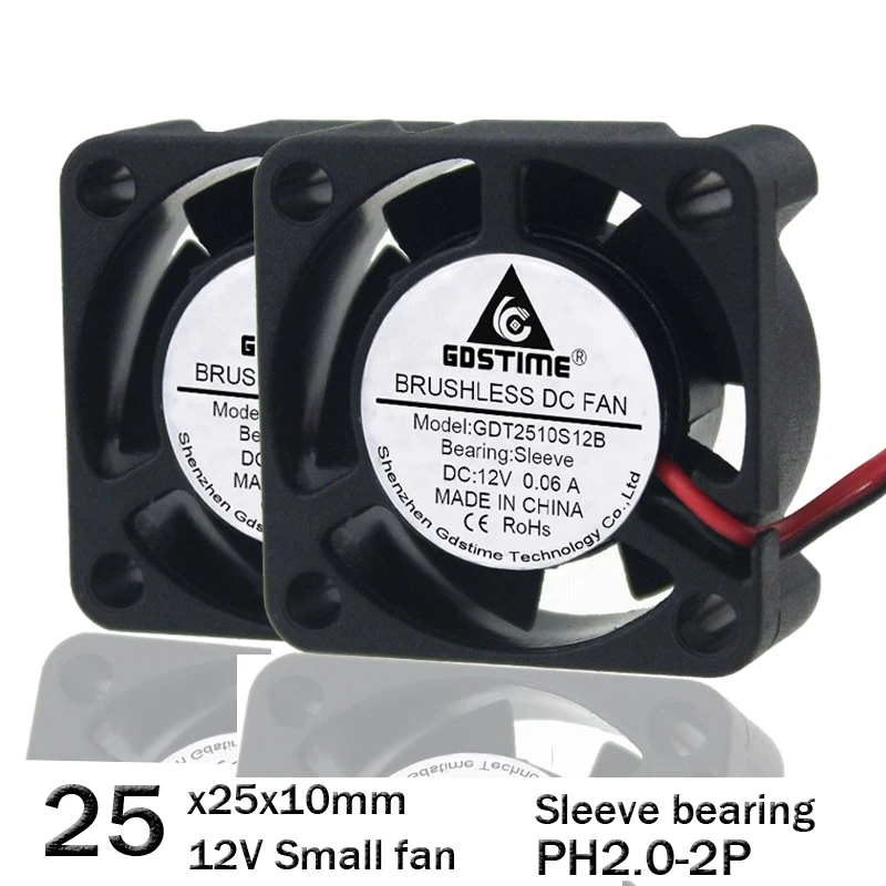 1 шт. Gdstime 25 мм 25x25x10 мм 2Pin 12 В мини Бесщеточный Охлаждаю...