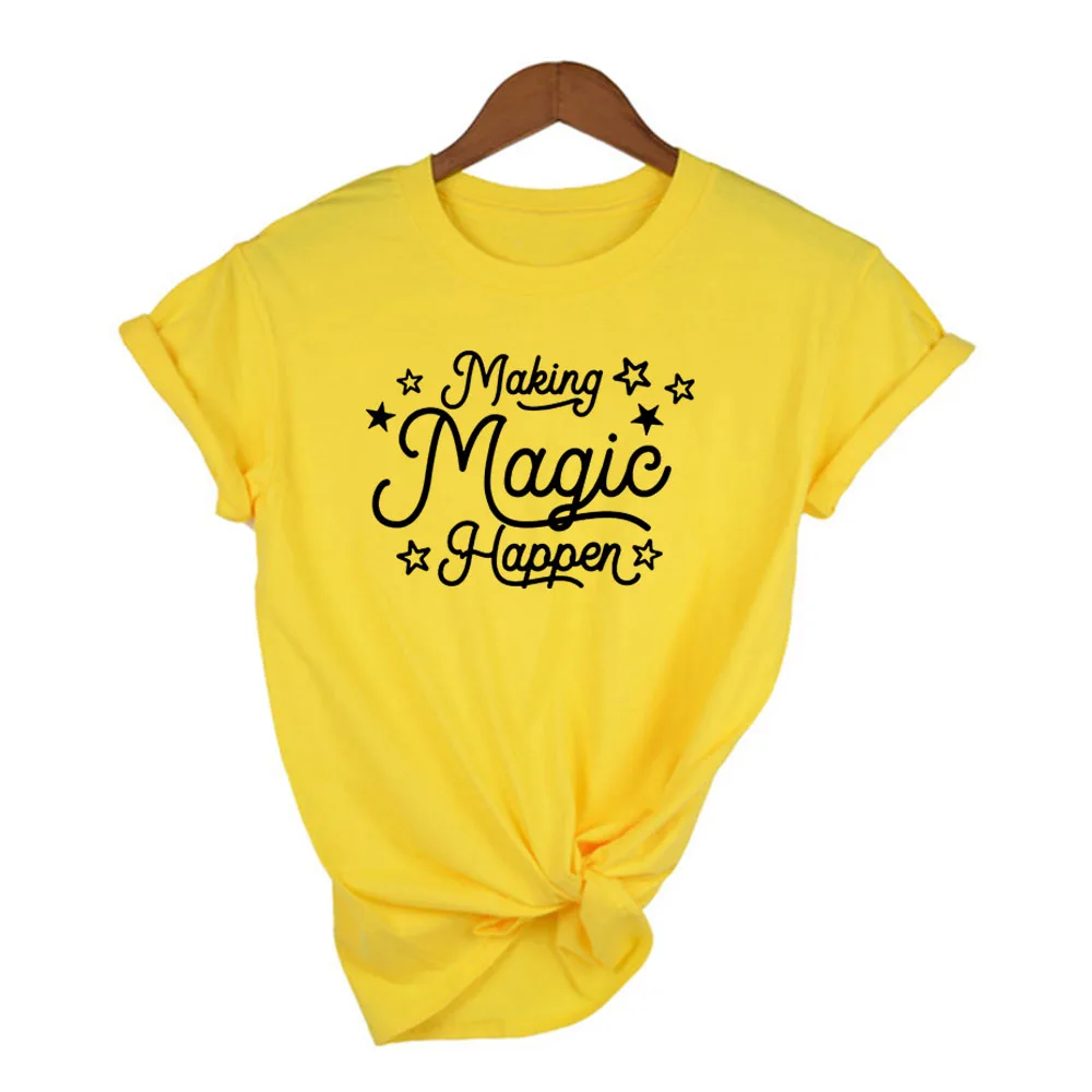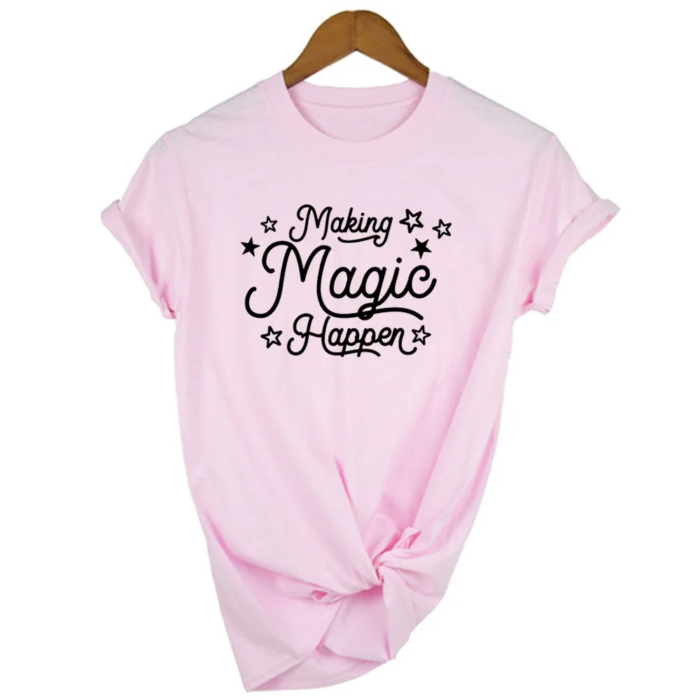 Женская Винтажная Футболка с принтом Making Magic Happens, летняя рубашка с круглым вырезом, в стиле Харадзюку