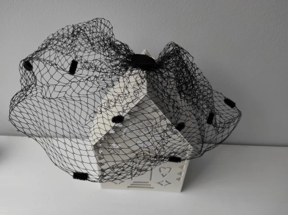 Головной убор ручной работы, в горошек, с крупной сеткой, белого и черного цветов