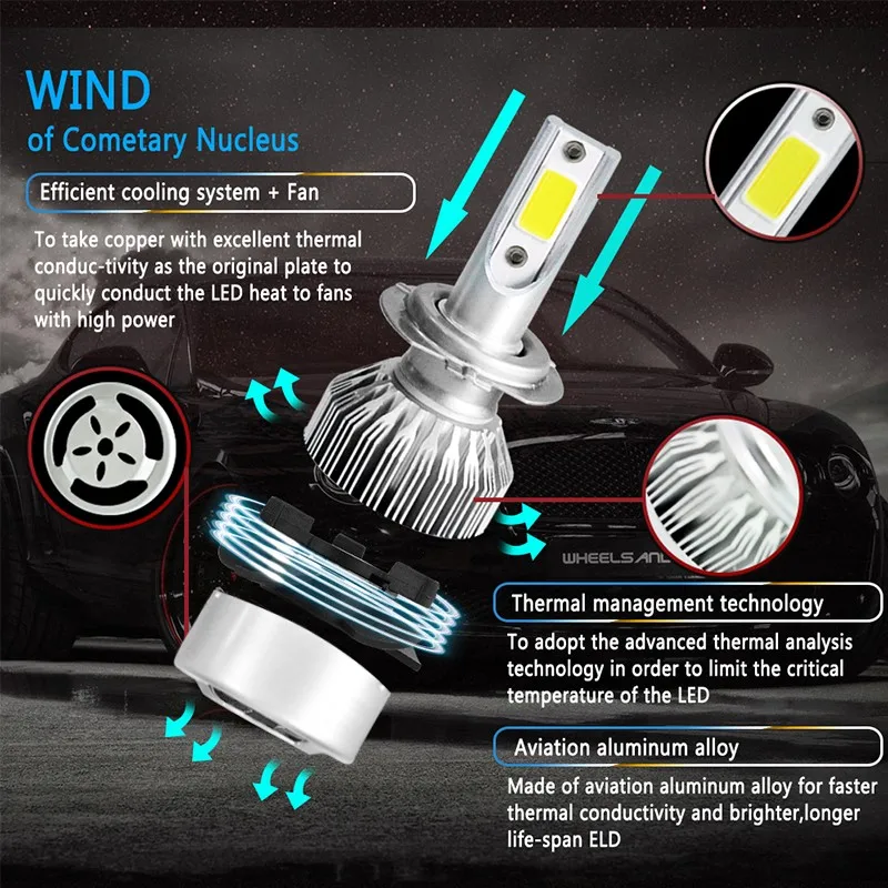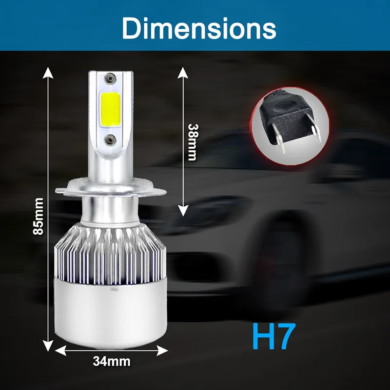 Описание:Тип штекера: C6 H1/H3/H4/H7/9005/9006. ОднолучевойМощность: 72 Вт/комплект (36 Вт/лампочка)Источник светильник (каждый комплект): 2 светодиодных чипа COB, холодный белый 6500KВходное напряжение: 12 В-24 В постоянного токаСветовой поток: 7600 лм/комплект (3800 лм/лампа)Рабочая температура: -40-80 градусов ЦельсияМатериал: авиационный алюминий 6063Профиль IP65 защита от воды и пыли, угол луча 360 градусовПосылка1x светодиодный ные лампы для фар