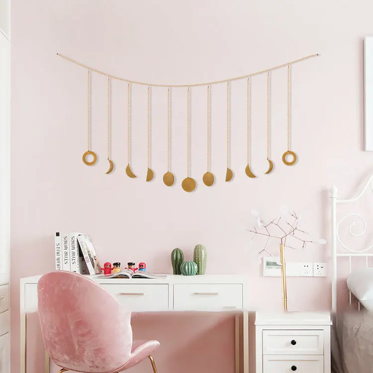 Подвесное украшение в форме Солнца и Луны, металлическое круглое настенное украшение для спальни, гостиной