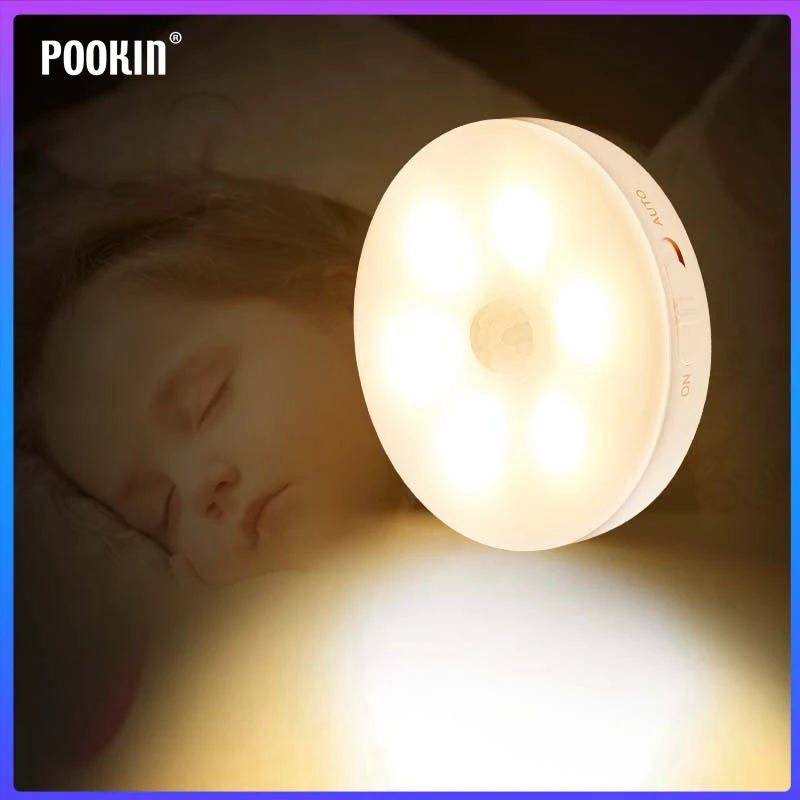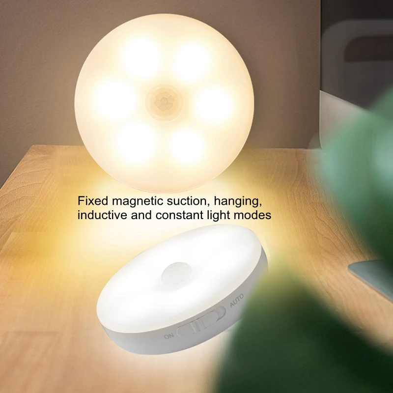 Новый Умный автоматический датчик движения тела, светодиодный индукционный перезаряжаемый ночник, активируемый настенный светильник, светильник ильник для кухонного шкафа
