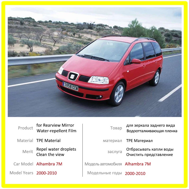 Для Seat Alhambra 7M 2000 - 2010 полное покрытие зеркальная пленка заднего вида HD анти-туман непромокаемая Автомобильная Зеркальная Наклейка Автомобильные аксессуары 2009