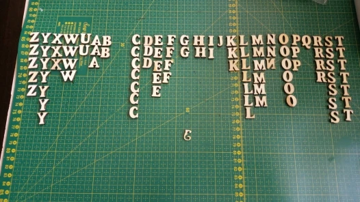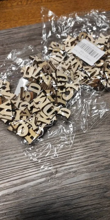 Буквы хорошего размера и качества, но есть буквы, из которых есть только одна единица, а другие, менее обычные, например, «X», есть 12. Есть только один «P» и один «F», буквы, с которыми больше слов построены. I ordered 100 to have a variety of Letters, there should be More or less The Same of the most usual letters.