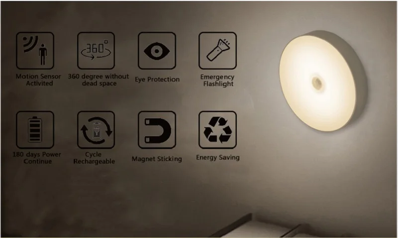 PIR датчик движения Ночной светильник Автоматическое включениевыключение для спальни ЛЕСТНИЦЫ шкаф беспроводной USB Перезаряжаемый настенный светильник