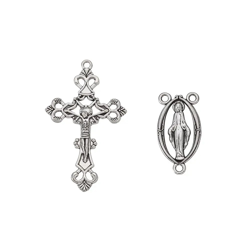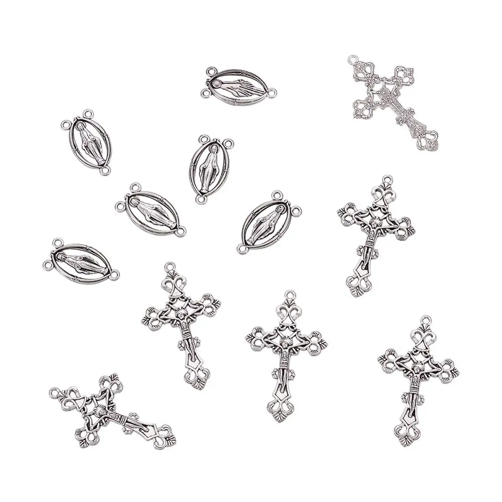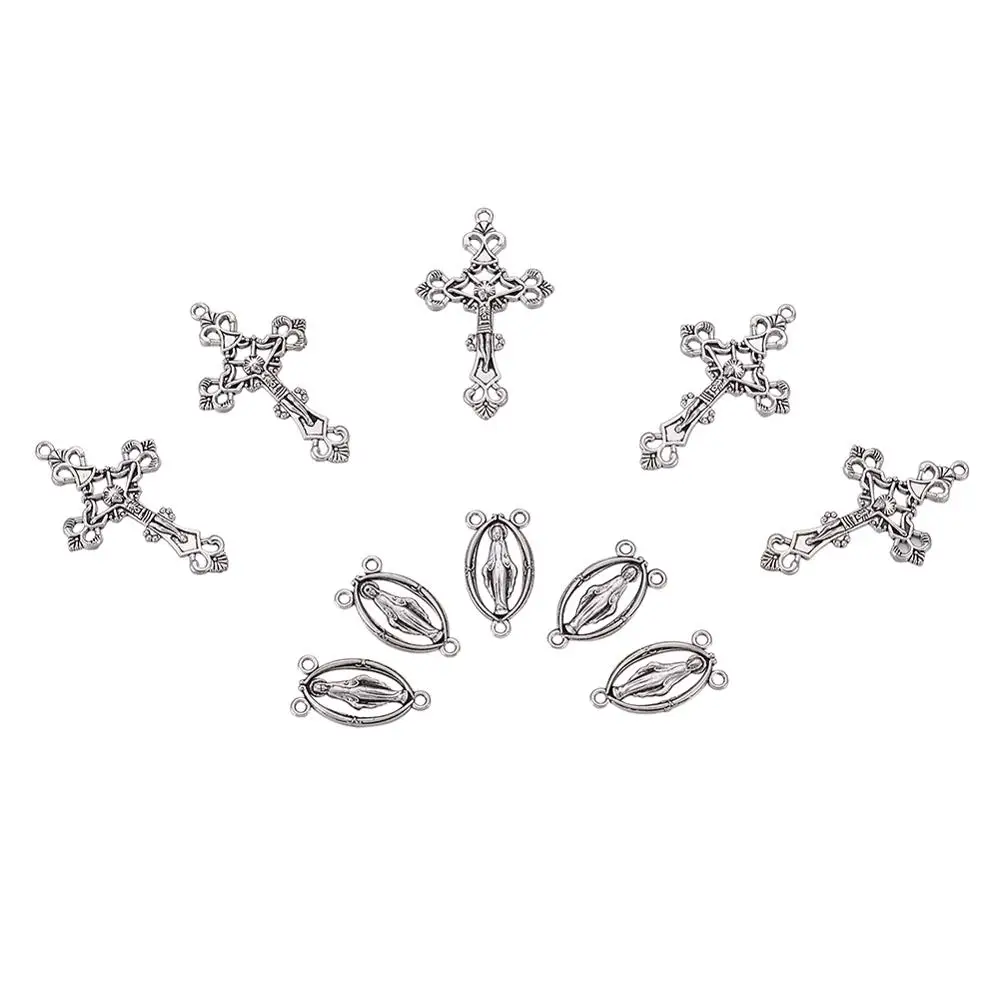 10 наборов, набор из трех частей, подвески из сплава с крестообразными крестами для четки из бусин, ожерелье для пасхи, античное серебро