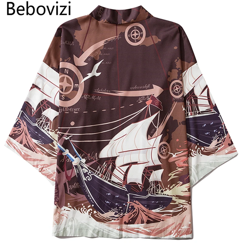 Кимоно Bebovizi в японском стиле для мужчин и женщин, хаори с лодочкой и волнами, Традиционная японская одежда, азиатская одежда