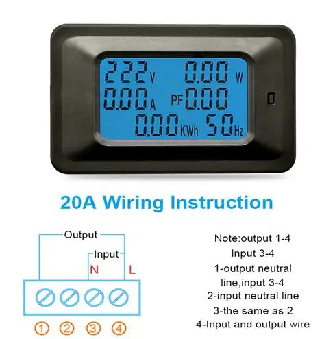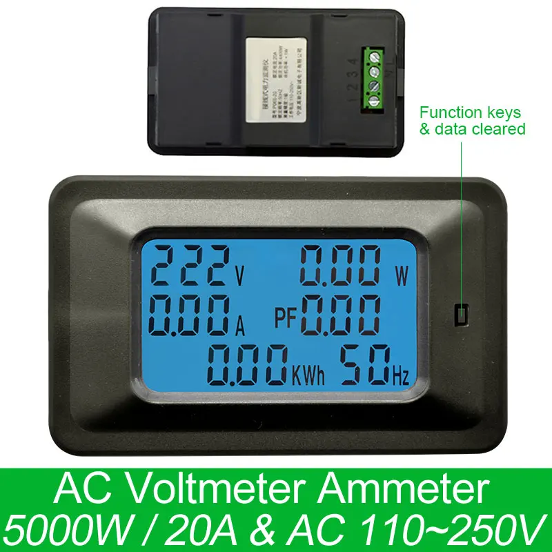 Цифровой измеритель напряжения, вольтметр с ЖК дисплеем, вольтметр мощности, 5 кВт, 20 А