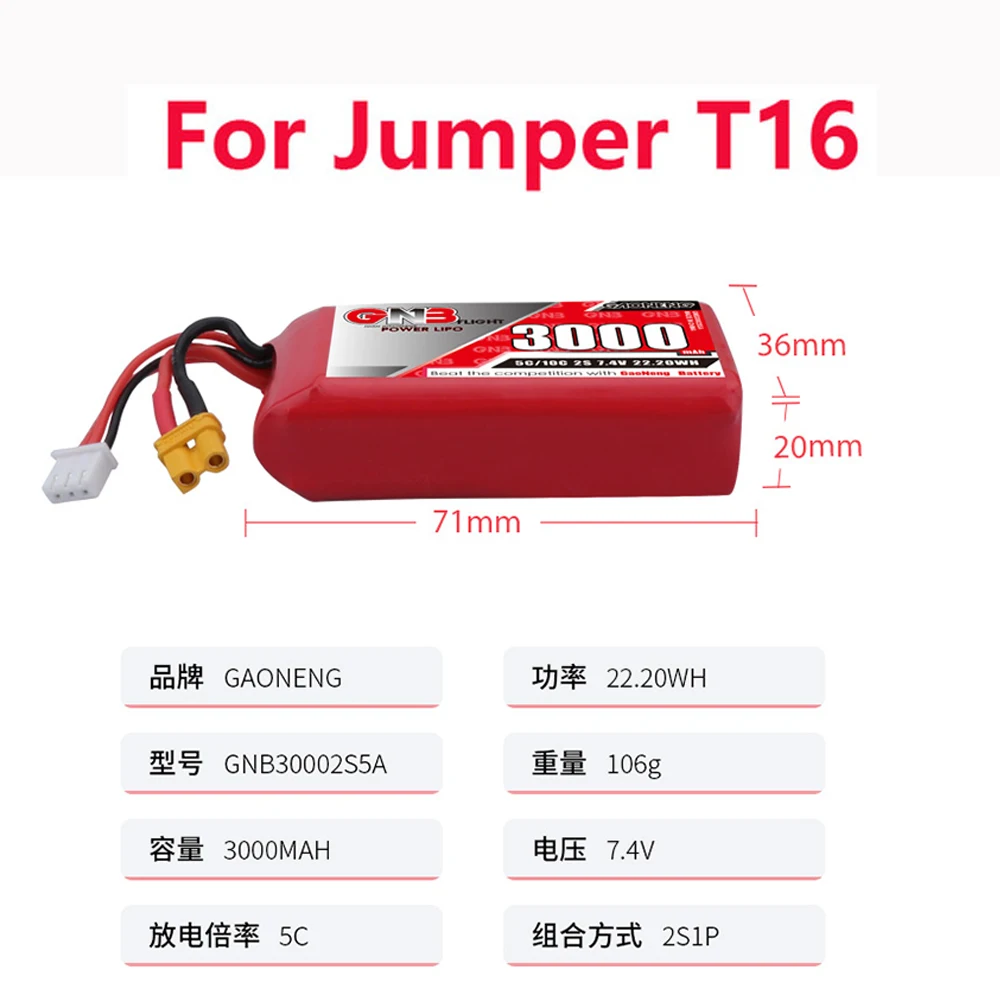 Аккумулятор Gaoneng GNB 2S 2500 мАч, 3500 мАч, 7,4 В, для пульта дистанционного управления Frsky Tarani X9D Plus Jumper T16