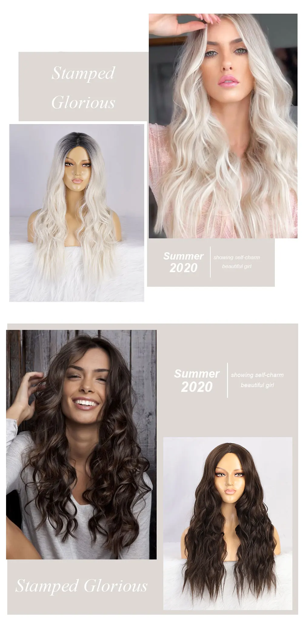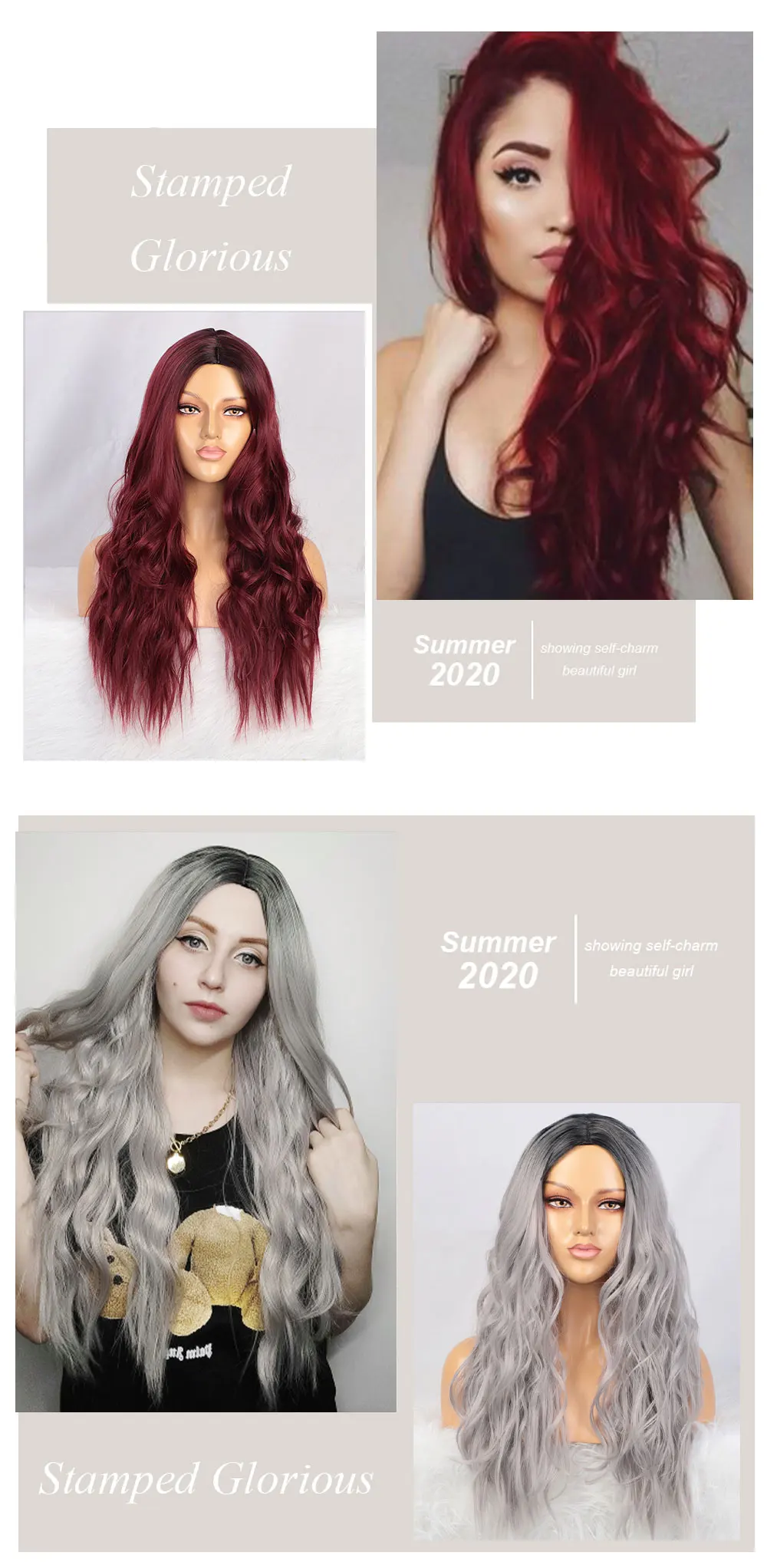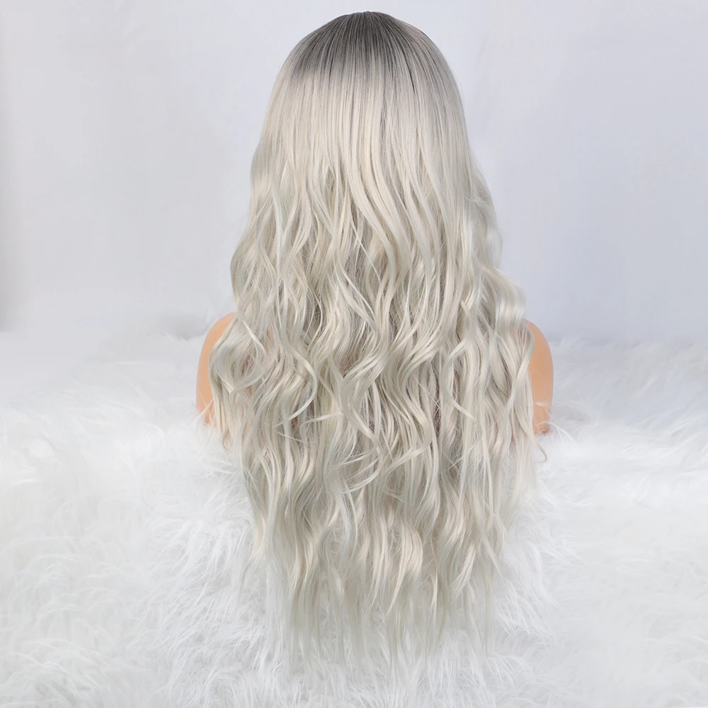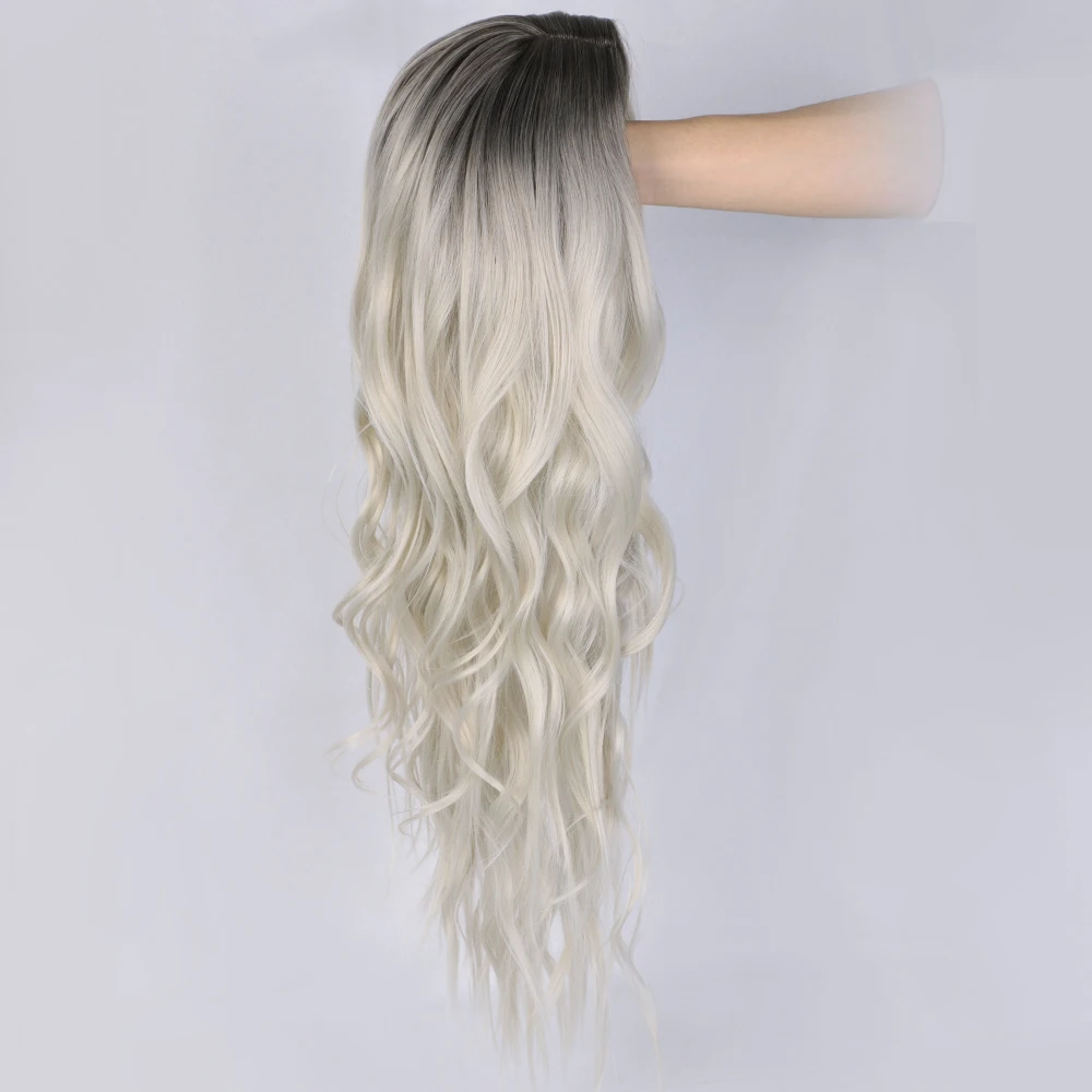 Синтетический парик Омбре из черного платинысерогоБлонд, термостойкие волосы, Синтетические длинные парики для чернокожих женщин, парик для косплея
