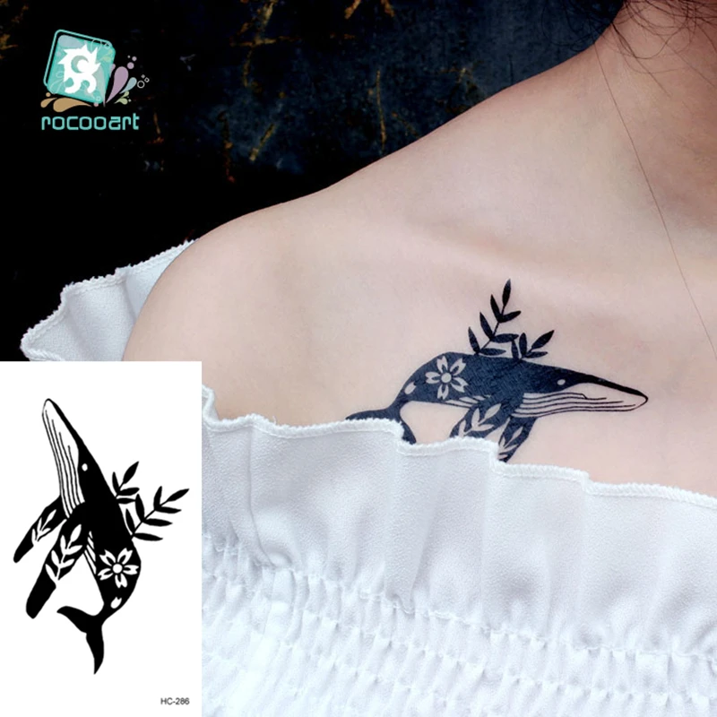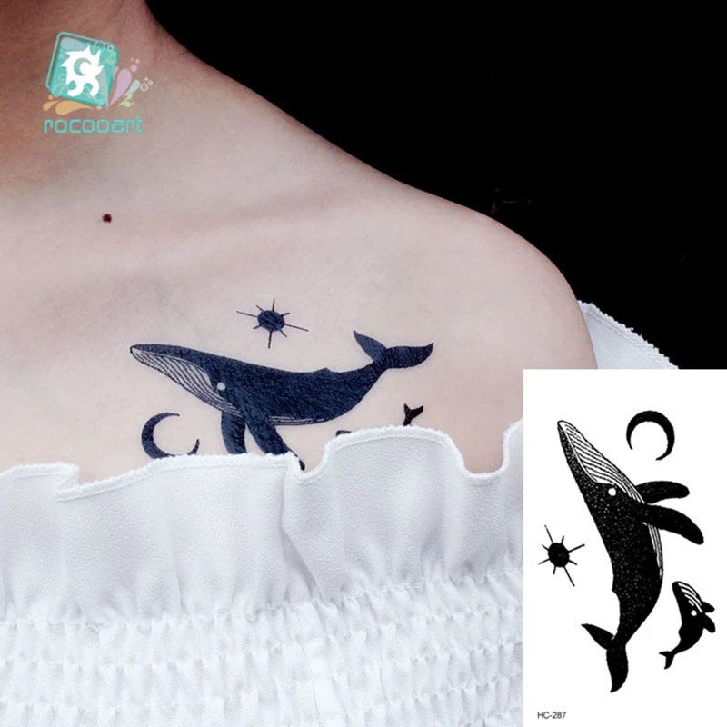 Черно-белые классические водостойкие маленькие татуировки, животные, дельфин, Кит, олень, Временные татуировки, наклейки, боди-арт, поддельные татуировки для мужчин