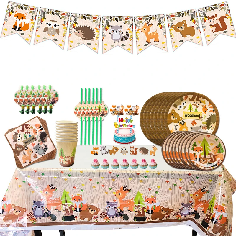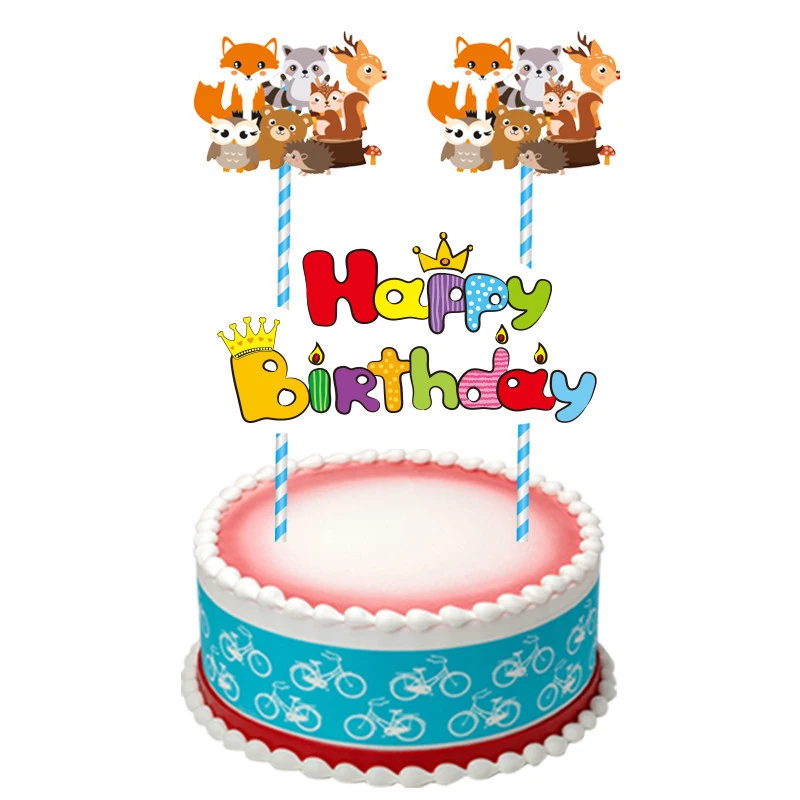 Серия лесных животных, Лесной зоопарк, лес, лиса, Лев, слон, маленькое животное, одноразовое украшение для торта на день рождения