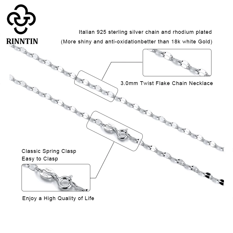 Женская цепочка из серебра 925 пробы Rinntin, массивное ожерелье из стерлингового серебра 3,0 мм с плетением и чешуйками, 18 дюймов, 45 см, подарочное ювелирное изделие, для подарка, в подарок, в виде SC26-P-18