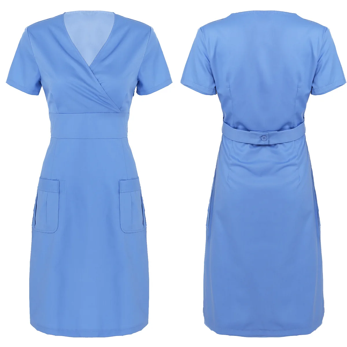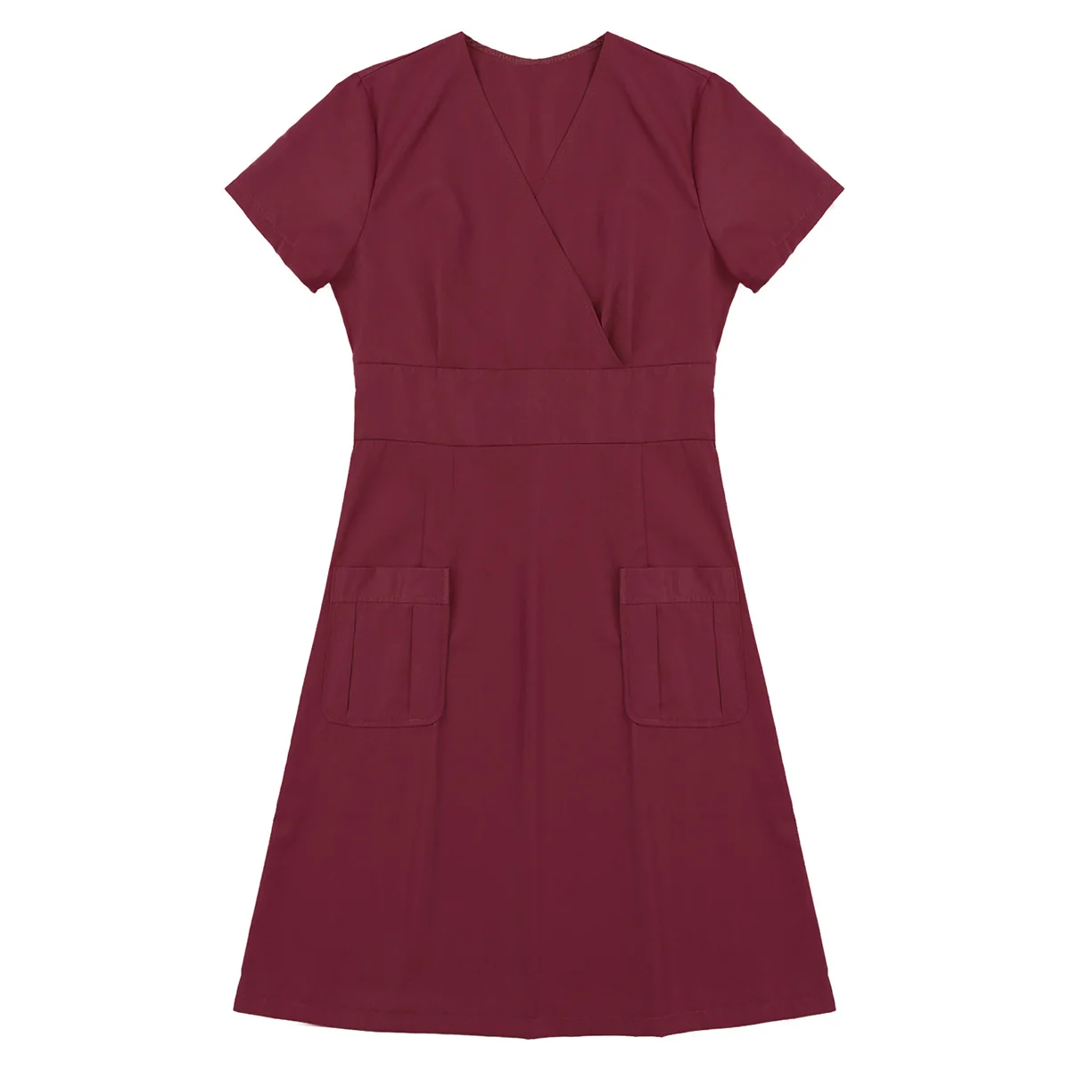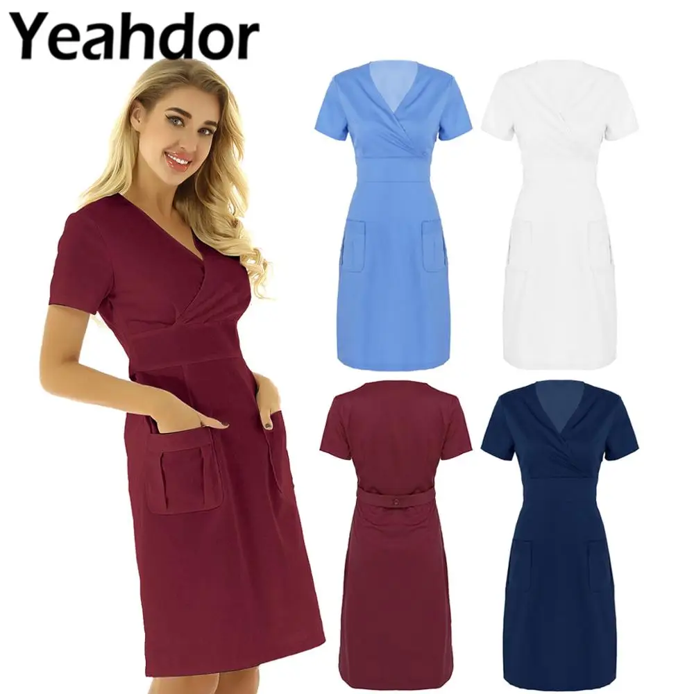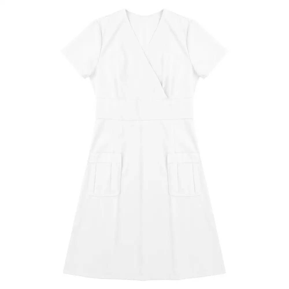 Женское платье трапециевидной формы, с V-образным вырезом и короткими рукавами, с запахом, униформа для взрослых